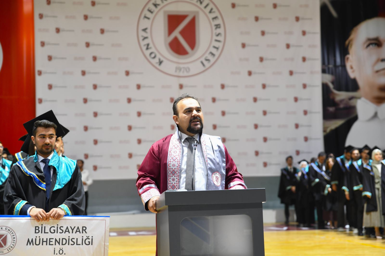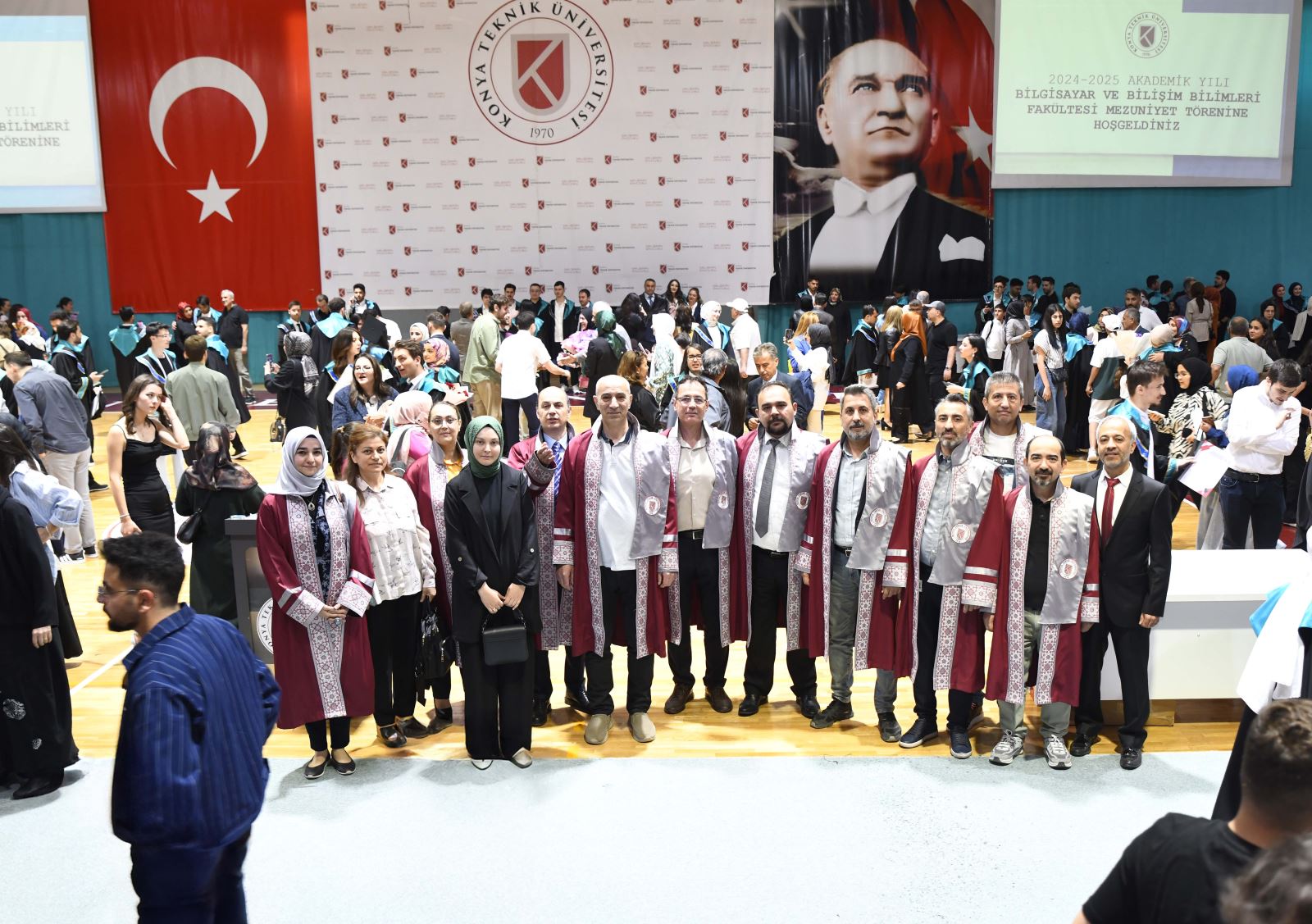 Held at the Indoor Sports Hall of our Development Campus, the graduation ceremony created unforgettable moments for both students and their families. The event was attended by our Rector Prof. Dr. Osman Nuri Çelik, Vice Rectors Prof. Dr. Hüseyin Deveci and Prof. Dr. Ali Köken, Vice Dean of the Faculty of Computer and Information Sciences Prof. Dr. Mustafa Servet Kıran, Vice Deans of the Faculty of Engineering and Natural Sciences Prof. Dr. Esra Yel and Assoc. Prof. Dr. Gürol Önal, Director of the Graduate School Prof. Dr. Mevlüt Uyan, Secretary General Kamil Gök, heads of departments, academic and administrative staff, and a large number of students and their families.