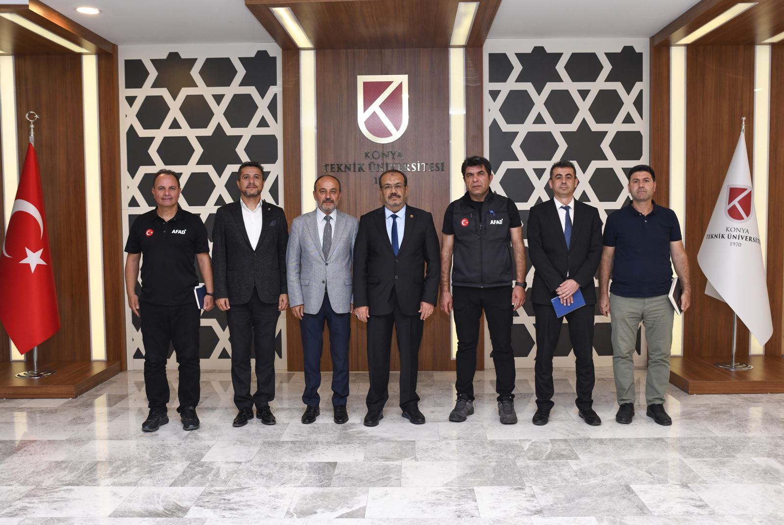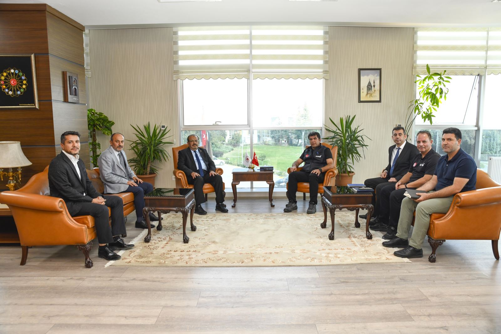 AFAD Konya Provincial Director Ali İhsan Körpeş and his delegation met with the Director of the Sinkhole Application Research Center, Prof. Dr. Fetullah Arık, and our Rector, Prof. Dr. Osman Nuri Çelik, to discuss the necessary steps for building a “Disaster Resilient Society,” “Disaster Resilient Cities,” and a “Disaster Resilient Turkey.”