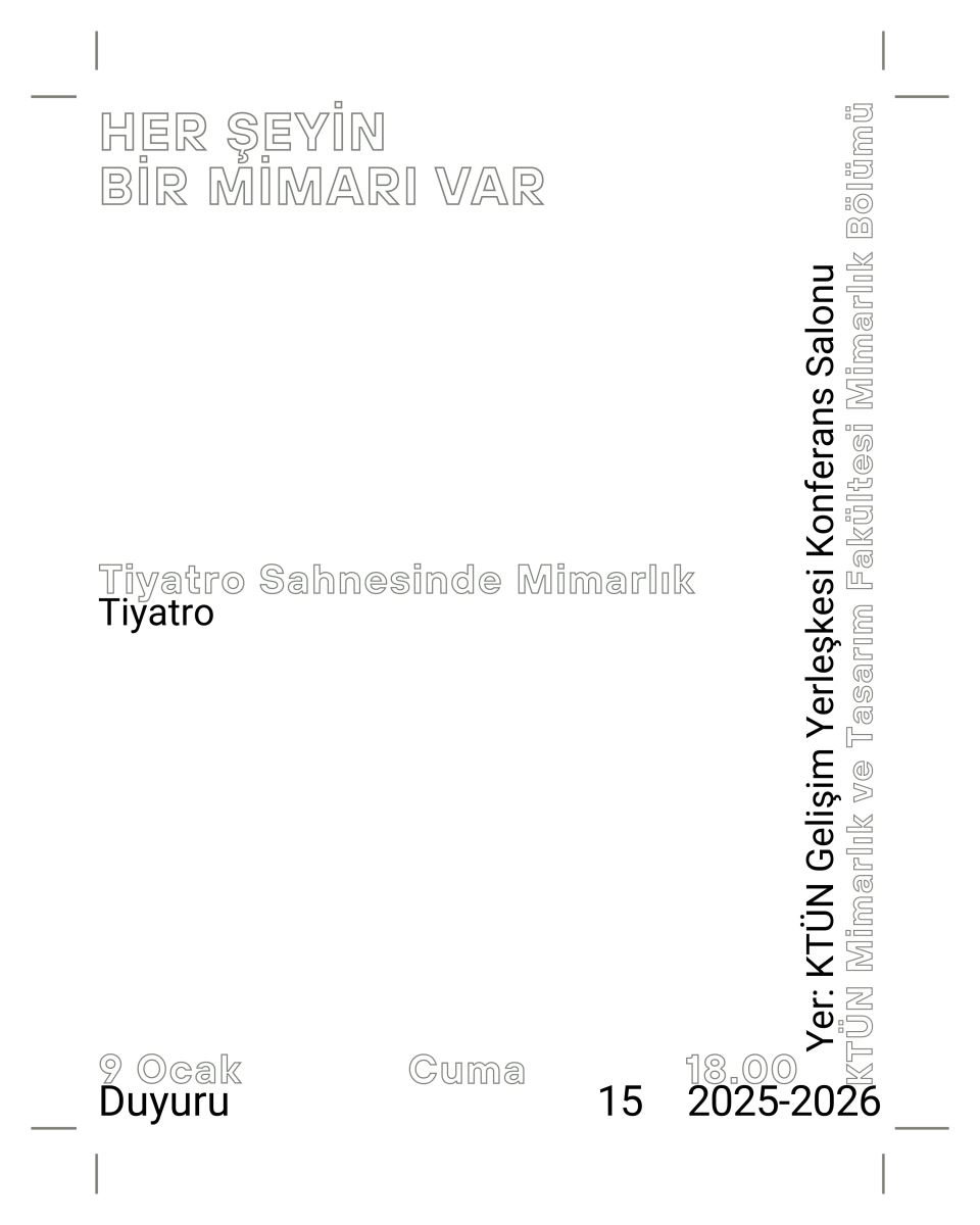 Tiyatro Sahnesinde Mimarlık dersi kapsamında Prof. Dr. Bilgehan Yılmaz hocamızın yürütücülüğünde her yıl gerçekleştirilen tiyatro gösterisi, bu yıl "Her Şeyin Bir Mimarı Var" adıyla gerçekleştirilmiştir. Mimarlık mesleğine ilişkin eleştirel ve düşündürücü mesajları mizahi bir anlatımla harmanlayan bu gösterinin gerçekleştirilmesinde emeği geçen hocamıza, etkinliğe katkı sunan öğrencilerimize ve katılımlarıyla programı zenginleştiren değerli izleyicilerimize teşekkür ederiz.