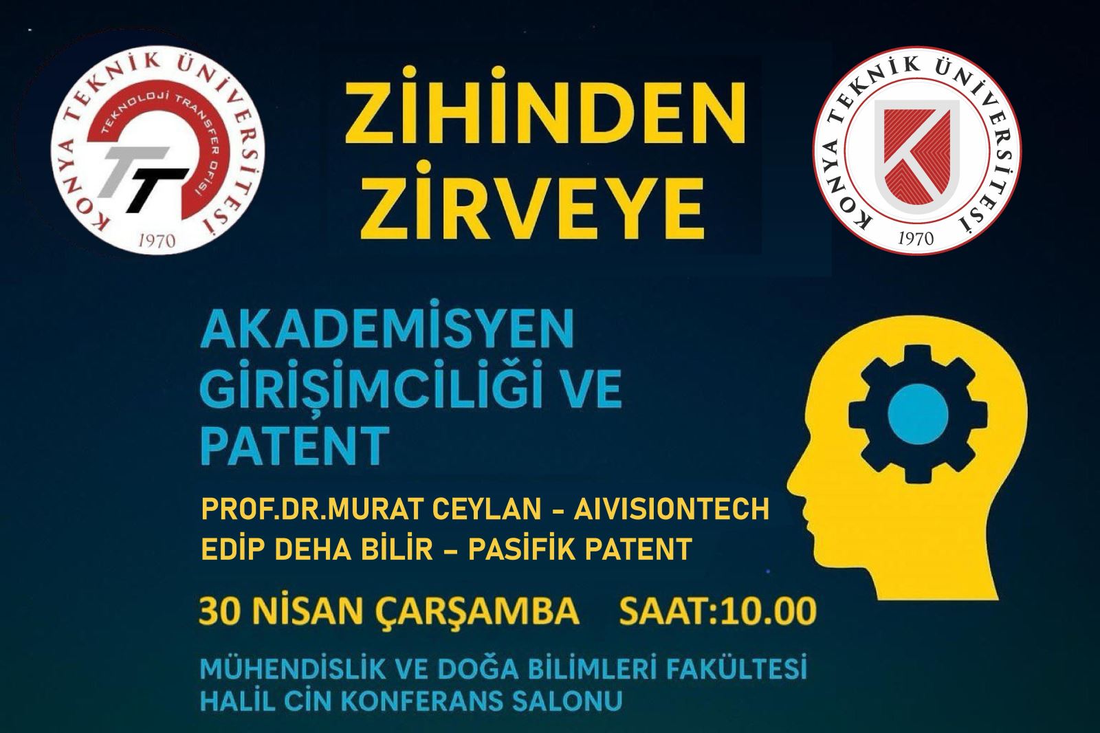 30 Nisans 2025 Çarşamba günü saat 10:00'da zihinden zirveye akademisyen grişimliği ve patent etkinliği gerçekleştirilecektir.