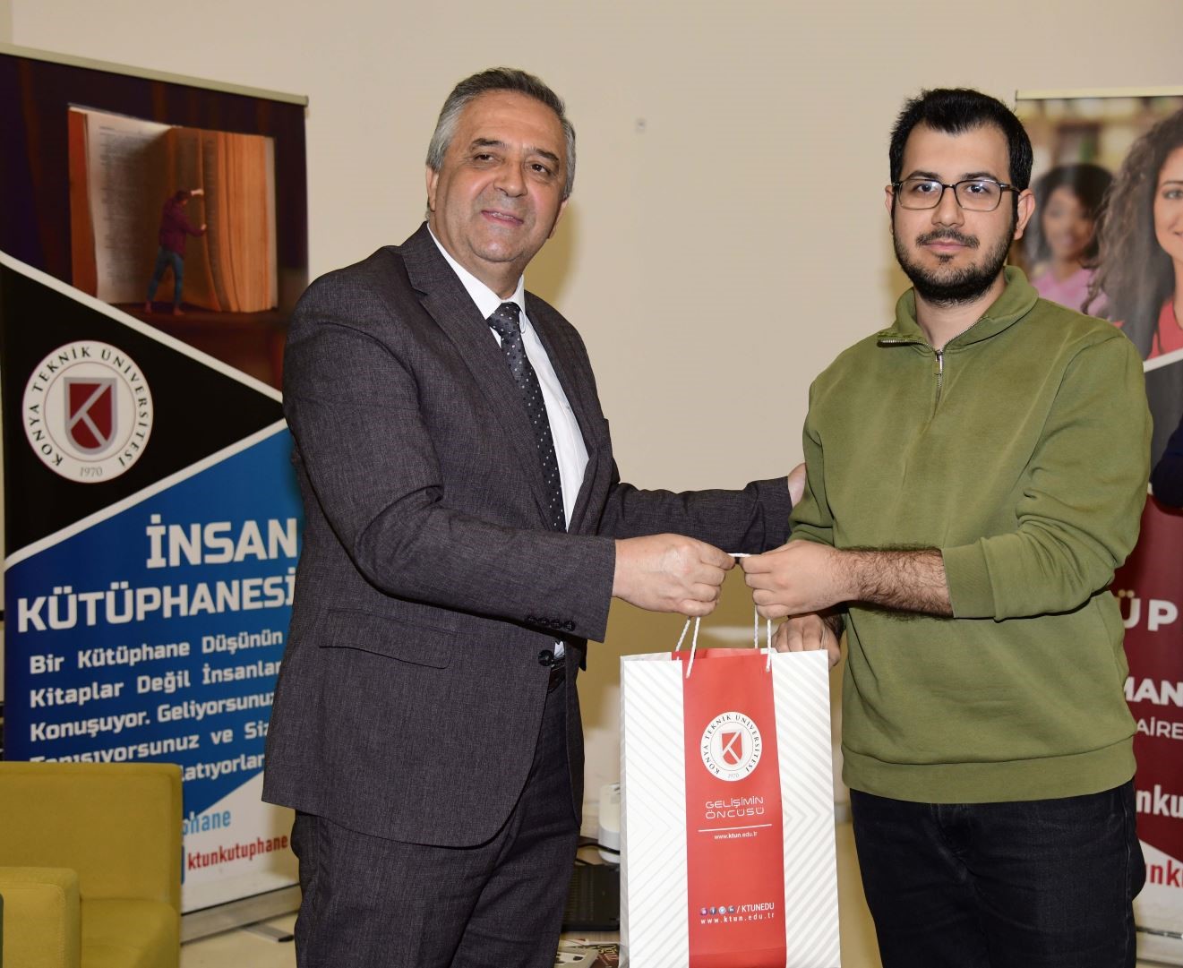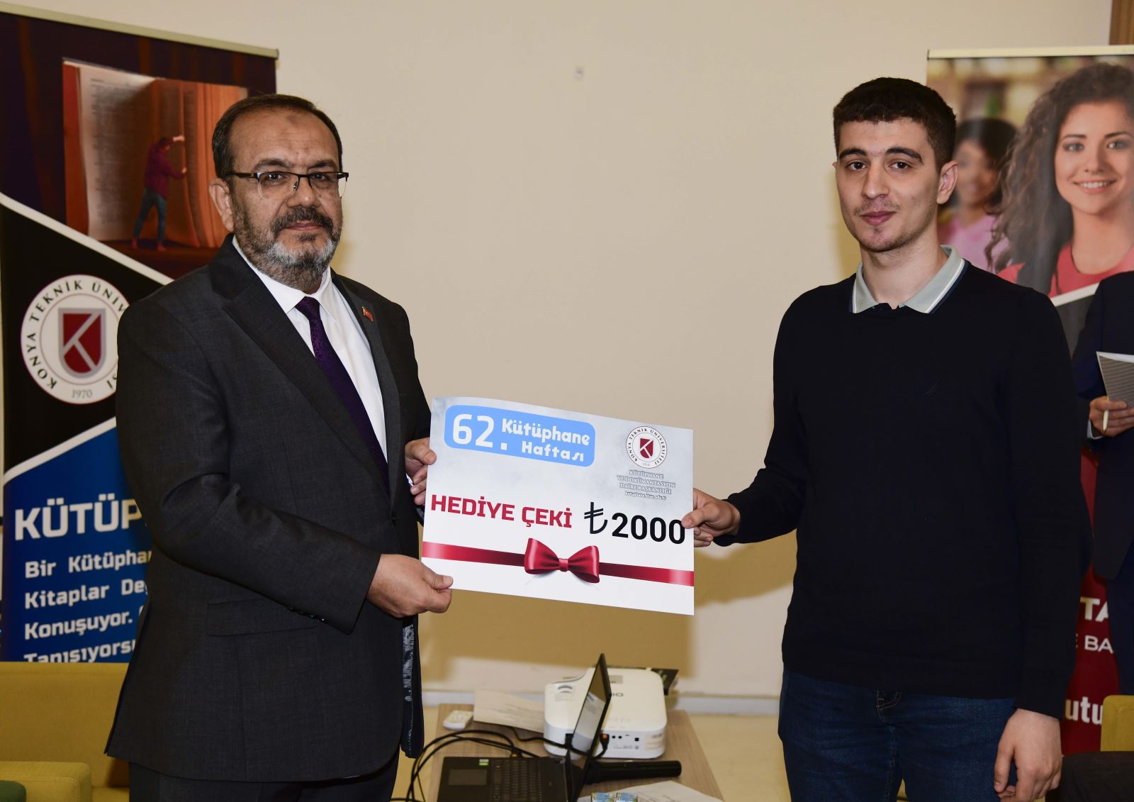 Programın devamında geleneksel ödül törenine geçildi. 2025 yılında en fazla kitap okuyan ve veri tabanlarını en etkin kullanan kütüphane kullanıcılarına ödülleri, Rektör Prof. Dr. Osman Nuri Çelik ile Rektör Yardımcısı Prof. Dr. Ali Köken tarafından takdim edildi.