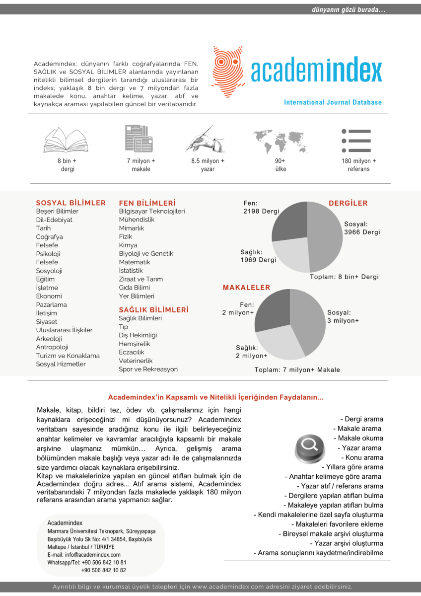 Academindex Veri Tabanı' na ulaşmak için tıklayınız.