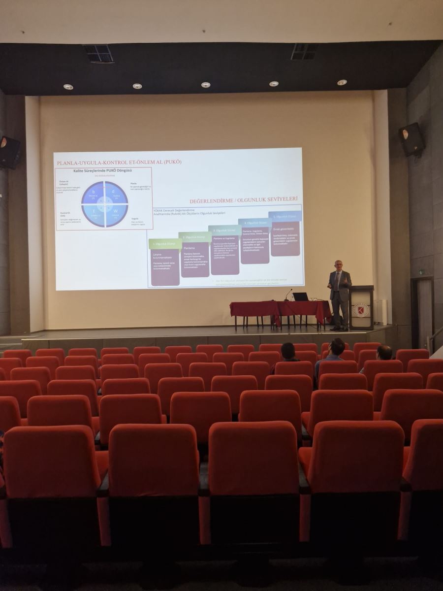 Üniversitemiz kalite birim yöneticileri ve temsilcilerine yönelik Birim İç Değerlendirme Süreç Yönetimi A. Liderlik Yönetim ve Kalite Eğitimi Prof. Dr. İhsan ÖZKAN tarafından 29.05.2024 tarihinde Gelişim Yerleşkesi Konferans Salonunda verilmiştir.