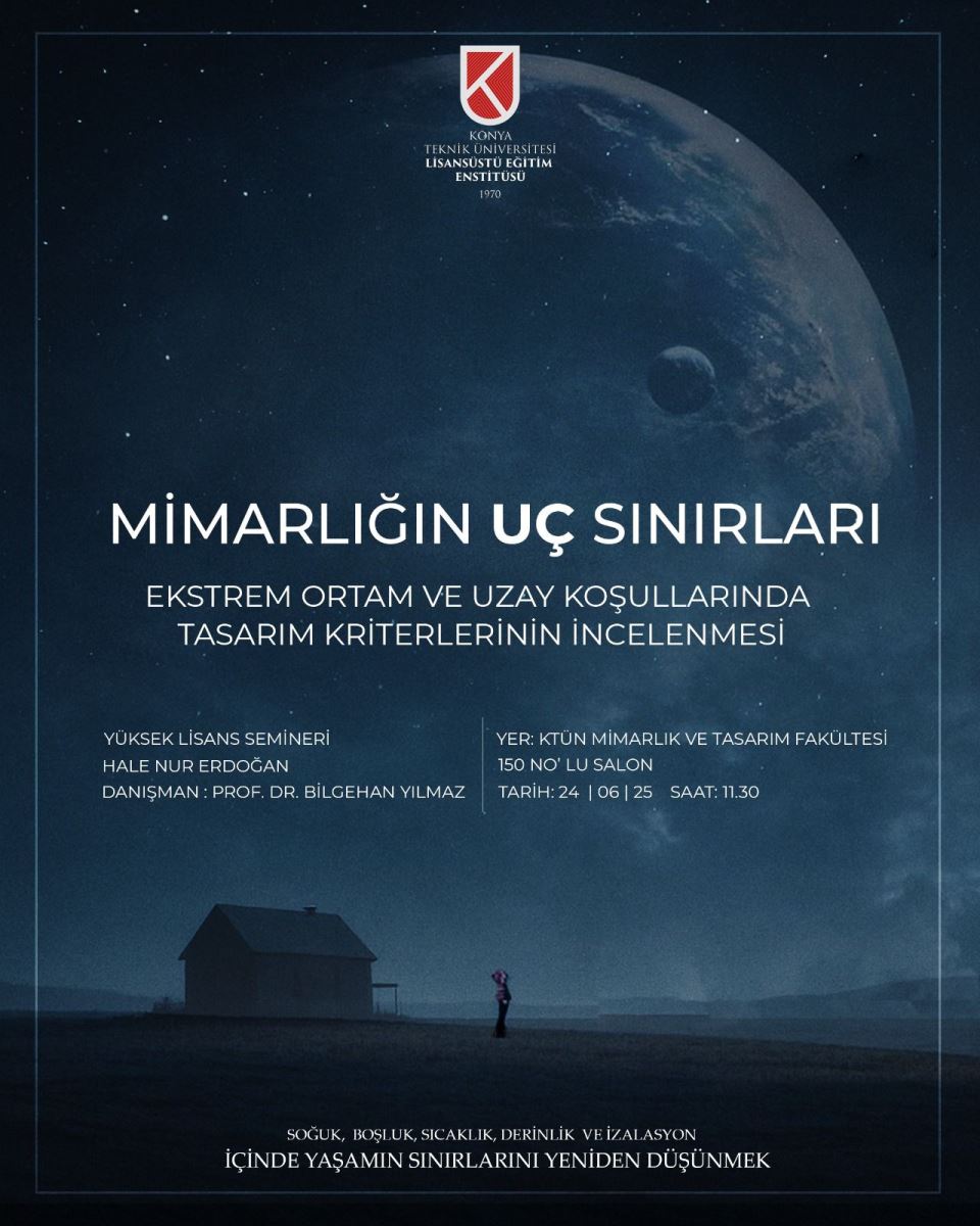 Prof.Dr. Bilgehan YILMAZ hocamızın lisansüstü öğrencisi Halenur Erdoğan’ın yüksek lisans seminer sunumu 24 Haziran salı günü saat 11.30’da 150 nolu sınıfta gerçekleştirilecektir. KTÜN Mimarlık