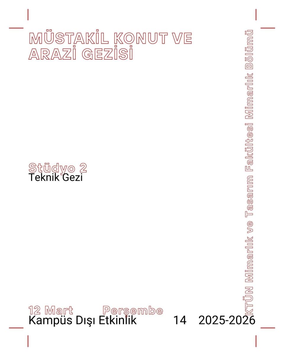 Stüdyo 2 dersi kapsamında Doç. Dr. Zafer KUYRUKÇU koordinatörlüğünde Konya'da müstakil konutlara yönelik teknik gezi düzenlenmiş ve tasarım alanına yönelik incelemeler yapılmıştır.