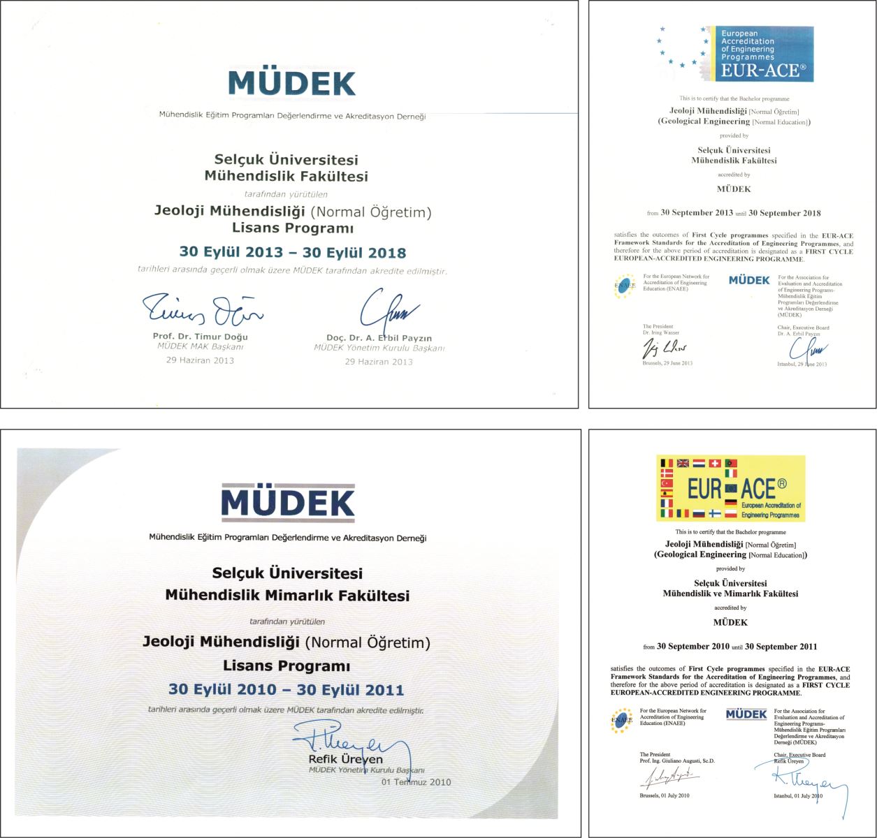 | Jeoloji Mühendisliği (NÖ) | 30.09.2013-30.09.2018 | 30.09.2013-30.09.2018 |