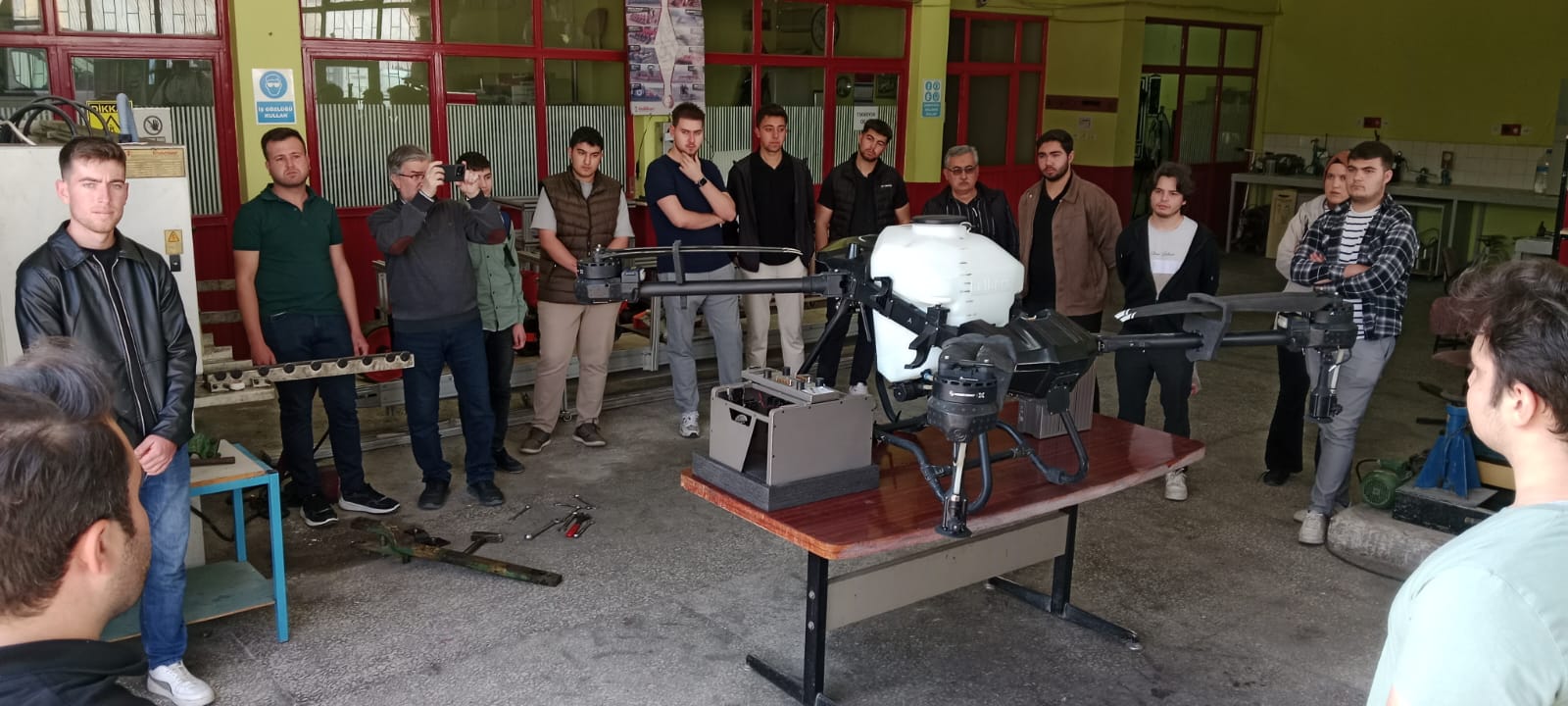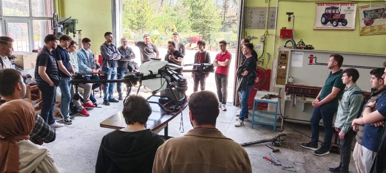 Gelişen teknoloji tarım alanında da kullanılmaya başlamıştır. Bu kapsamda Makine ve Metal teknolojileri Bölümü, Tarım Makineleri Programı olarak sivil döner kanat insansız hava araçlarının geliştirilmesi ve özellikle ilaçlama droneları ile ilgili gelişmeleri yakından takip etmek ve öğrenmek amacı ile Mersin merkezli Baibars Mekatronik Havacılık Sanayi A.Ş. Yüksekokulumuza davet edildi. Firmanın Konya Bölge Sorumlusu Doğan ARICI ve Bünyamin ARICI ilaçlama droneları ile ilgili değerli bilgilerini tarım makineleri programı öğrencileri ile paylaştılar. Öğrenciler çeşitli sorular cevapladılar. Tarım Drone kısa bir deneme uçuşu ve ilaçlama sistemini tanıttılar. Bu güzel ve değerli etkinlik için Baibars Mekatronik Havacılık Sanayi A.Ş.'den Doğan ARICI ve Bünyamin ARICA’ya teşekkür ederiz. 06/05/2025