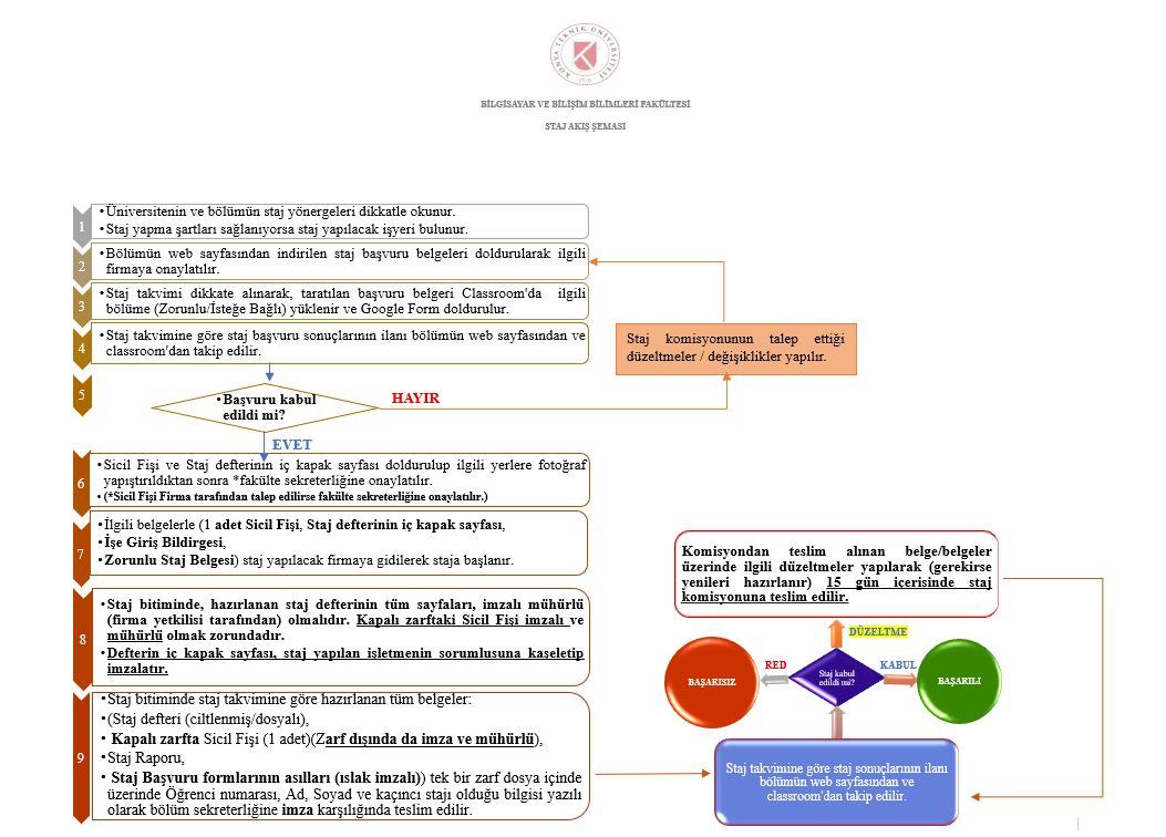 **NOT 2 : Staj kapsamında öğrenci iş yerinden ücret alacaksa ve iş yerinin işsizlik fonu katkısından yararlanma talebi varsa, KTÜN Strateji Daire Başkanlığı tarafından bu talebin staj sona erdikten sonra karşılanması için, Bilgisayar ve Bilişim Bilimleri Fakültesi’ne ödeme emri belgesi ve ekinde aşağıda belirtilen belgelerle başvurulmalıdır.
