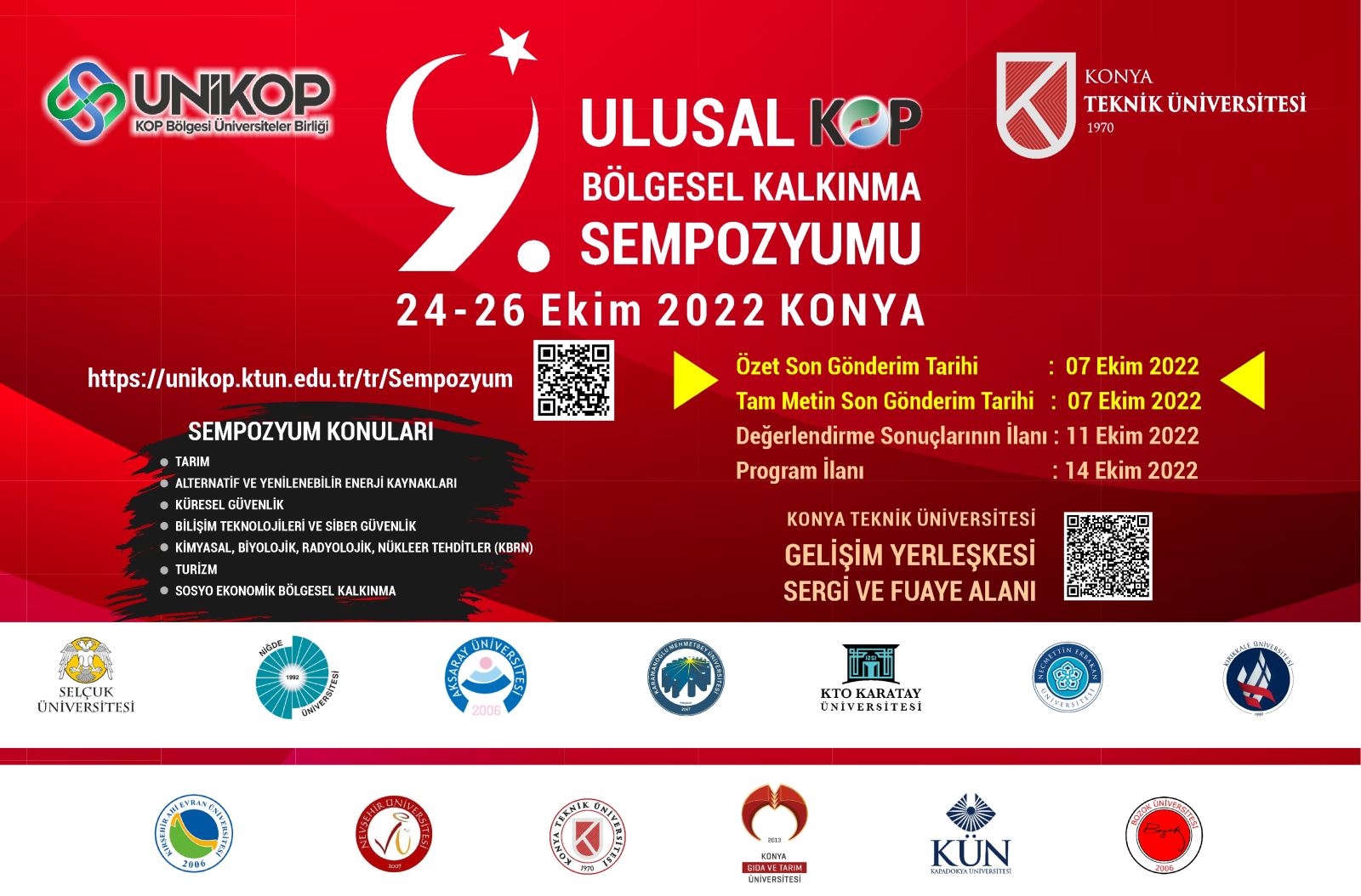 "Ulusal KOP Bölgesel Kalkınma Sempozyumu” bildiri gönderim tarihi '07 Ekim 2022 Cuma' gününe kadar uzatılmıştır.