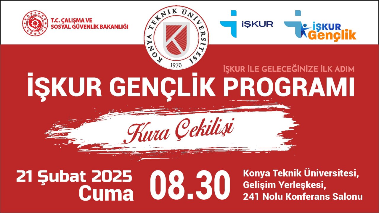 İŞKUR Gençlik Programı Kura Çekilişi için öğrencilerimizi KTÜN Gelişim Yerleşkesi Konferans Salonuna bekliyoruz.