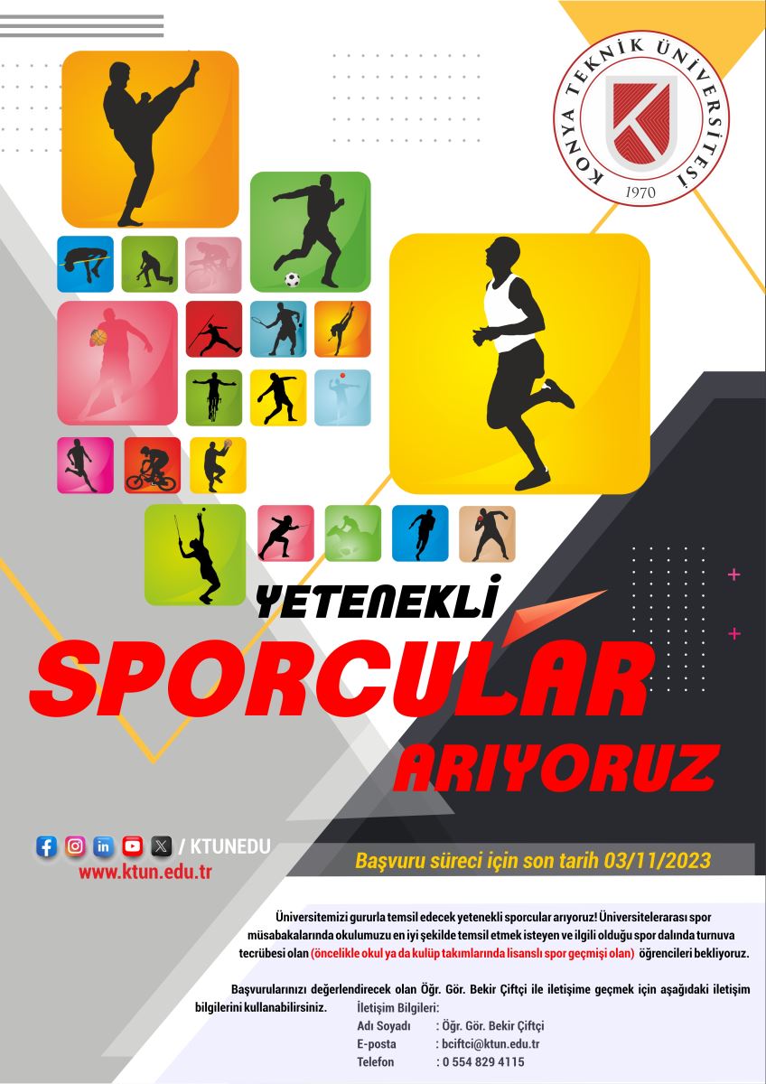 Üniversitemizi gururla temsil edecek yetenekli sporcular arıyoruz! Üniversitelerarası spor müsabakalarında okulumuzu en iyi şekilde temsil etmek isteyen ve ilgili olduğu spor dalında turnuva tecrübesi olan (öncelikle okul ya da kulüp takımlarında lisanslı spor geçmişi olan) öğrencileri bekliyoruz.