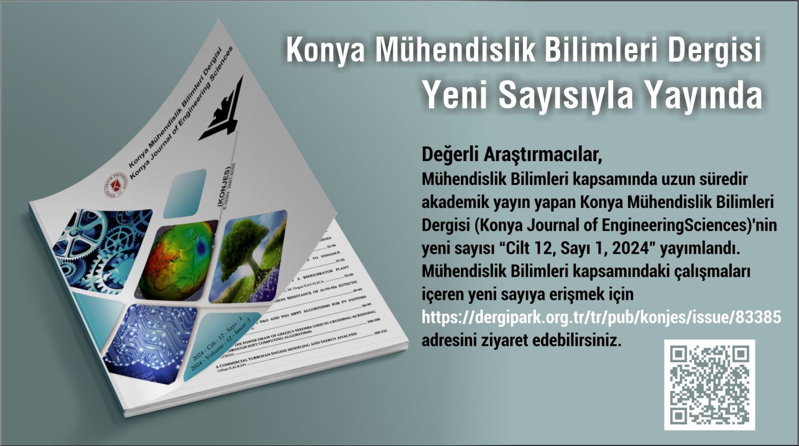 Mühendislik Bilimleri kapsamında uzun süredir akademik yayın yapan Konya Mühendislik Bilimleri Dergisi (Konya Journal of Engineering Sciences)’nin yeni sayısı “Cilt 12, Sayı 1, 2024” yayımlandı. Mühendislik Bilimleri kapsamındaki çalışmaları içeren yeni sayıya erişmek için https://dergipark.org.tr/tr/pub/konjes/issue/83385 adresini ziyaret edebilirsiniz.