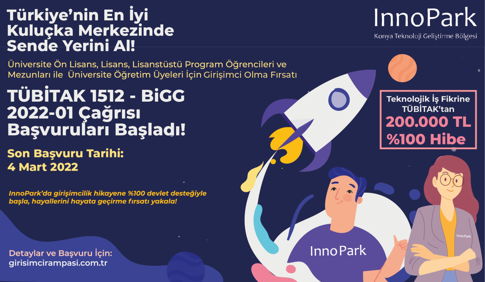 TÜBİTAK, uygulamakta olduğu 1512 Teknogirişim Sermayesi Desteği (BİGG) Programı ile üniversite öğrencileri ile mezunlarına, teknoloji ve yenilik odaklı iş fikirlerini, katma değer ve nitelikli istihdam yaratma potansiyeli yüksek girişimlere dönüştürebilmeleri için %100 hibe şeklinde proje başına 200.000 TL’ye kadar finansal destek sağlamaktadır. Program ile ilgili bilgilere https://tubitak.gov.tr/tr/destekler/sanayi/ulusal-destek-programlari/icerik-1512-teknogirisim-sermayesi-destegi-programi-bigg adresinden erişilebilir. BİGG Programına başvurular, ülke sathına yayılmış ve her biri TÜBİTAK tarafından BİGG Programı başvurularını alma konusunda yetkilendirilmiş olan BİGG Programı Uygulayıcı Kuruluşları tarafından alınmaktadır. InnoPark, TÜBİTAK tarafından BİGG Programı başvurularını almak ve 1. Aşama hizmetlerini vermek üzere yetkilendirilmiş 31 BİGG Uygulayıcı Kuruluşundan biridir. InnoPark, 1512 BİGG çağrılarına başvurmak isteyen üniversite öğrencileri ile mezunlarının ya da bunların oluşturdukları takımların programa başvurularını almakta, başvuran adaylara/takımlara BİGG programından destek almalarını sağlamak üzere ücretsiz eğitim, danışmanlık, mentörlük, pazar doğrulama, ön prototip oluşturma, patent başvuru, iş planı hazırlama desteği vb. hizmetleri vermektedir. InnoPark’ın yürütmekte olduğu BİGG-Girişimci Rampası programı ile ilgili bilgiler http://www.girsimcirampasi.com.tr adresindeki web sayfasından elde edilebilir. TÜBİTAK 1512-BiGG 2022 Yılı 1. Çağrısına başvurular da bu adresteki başvuru formunu doldurarak yapılabilmektedir. Programa başvurmak isteyen öğrenci ve mezunlarınız, sorularını bugra.karan@innopark.com.tr elektronik posta adresine veya 0544 250 53 02 nolu telefona yöneltebilirler. TÜBİTAK BiGG Programının tanıtımı ve başvuru sahiplerinin program ile ilgili tüm sorularının cevaplanabilmesi amacıyla 24.02.2022 tarihinde Saat 15:00 de bir webinar düzenlenmiştir. Webinara kayıt https://forms.gle/BVLNuxeK7pKNSPXe6 linkinden yapılabilmektedir.