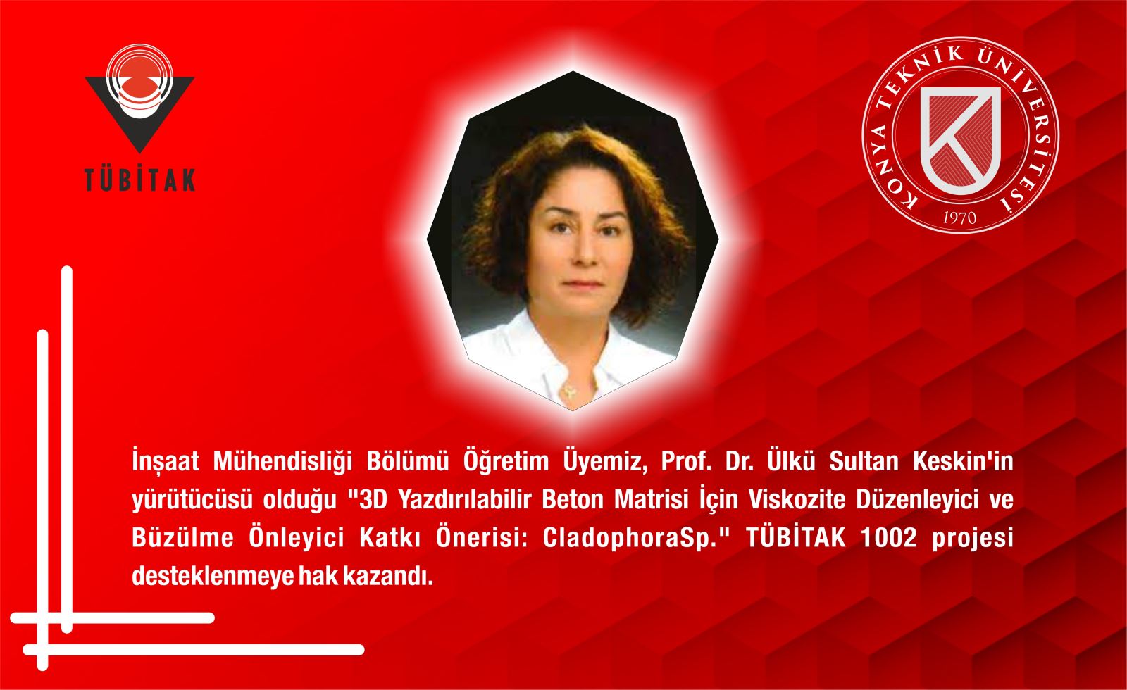 Üniversitemiz Mühendislik ve Doğa Bilimleri Fakültesi İnşaat Mühendisliği Bölümü Öğretim Üyemiz, Prof. Dr. Ülkü Sultan Keskin'in yürütücüsü olduğu "3D Yazdırılabilir Beton Matrisi İçin Viskozite Düzenleyici ve Büzülme Önleyici Katkı Önerisi: Cladophora Sp." TÜBİTAK 1002 projesi desteklenmeye değer görüldü. Öğretim Üyemizi tebrik ediyor başarılarının devamını diliyoruz.