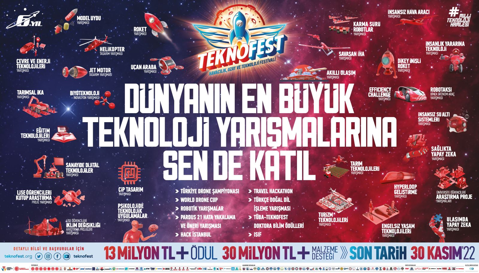 Dünyanın en büyük teknoloji festivali TEKNOFEST yarışma başvuruları yoğun talep üzerine 30 Kasım’a kadar uzatıldı.