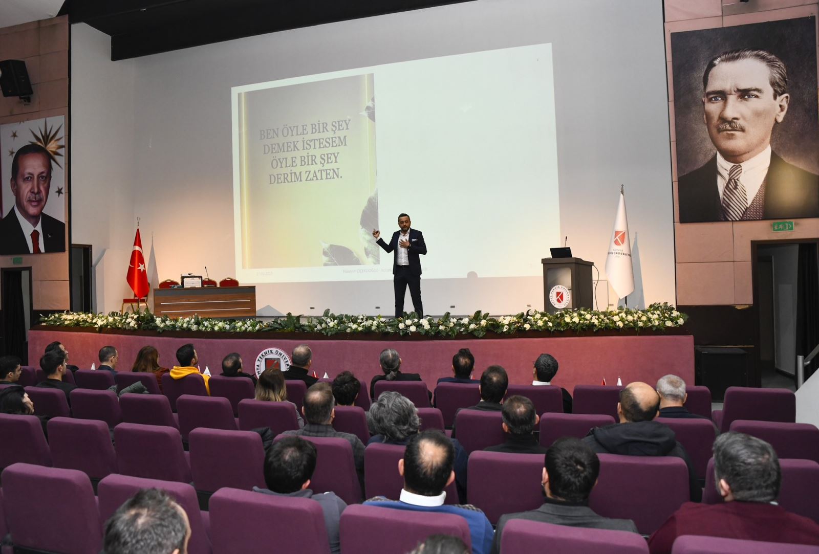 KTÜN Gelişim Yerleşkesi Konferans Salonunda düzenlenen, Mersin Üniversitesi öğretim üyelerinden Doç. Dr. Hüseyin Çiçeklioğlu’nun konuşmacı olarak yer aldığı programa, genel sekreterimiz, genel sekreter yardımcılarımız, daire başkanlarımız, akademik ve idari personel ile çok sayıda öğrencimiz katıldı.