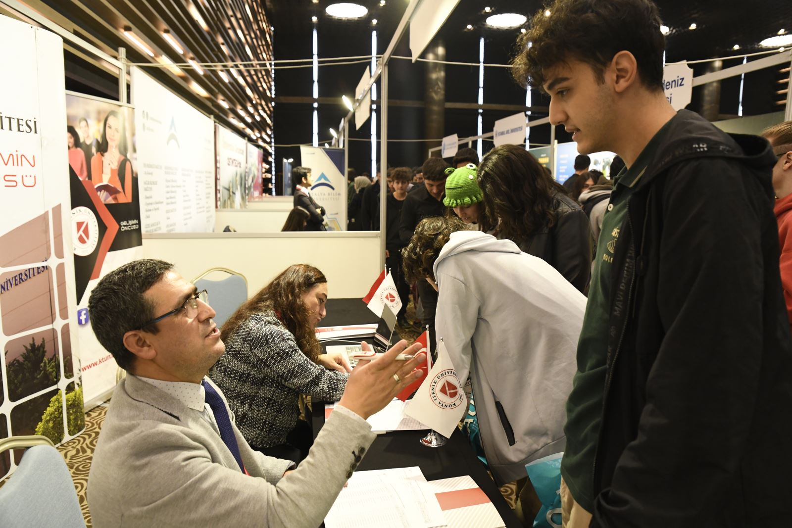 Konya Selçuklu Kongre Merkezi’nde gerçekleştirilen fuarda, üniversitemiziz yetkilileriyle yüz yüze görüşme imkanı bulan aday öğrenciler, Üniversitemizin bölümleri, yurt dışı imkanları, çift ana dal, yan dal, yatay ve dikey geçiş, burs olanakları, taban puanlar, tercih ve sıralama ile ilgili her konuda detaylı bilgi alma imkanı buldu.