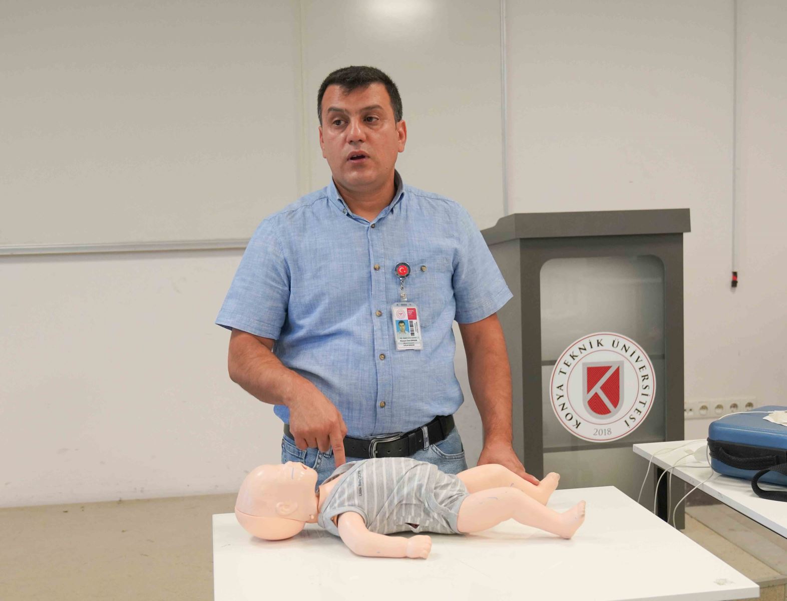 Üniversitemiz İş Sağlığı ve Güvenliği Koordinatörlüğü ile Konya İl Sağlık Müdürlüğü arasındaki ''İlkyardım Eğitimi İşbirliği'' kapsamında üniversitemiz akademik ve idari personellerine yönelik olarak uygulamalı temel ilk yardım eğitimleri verildi.