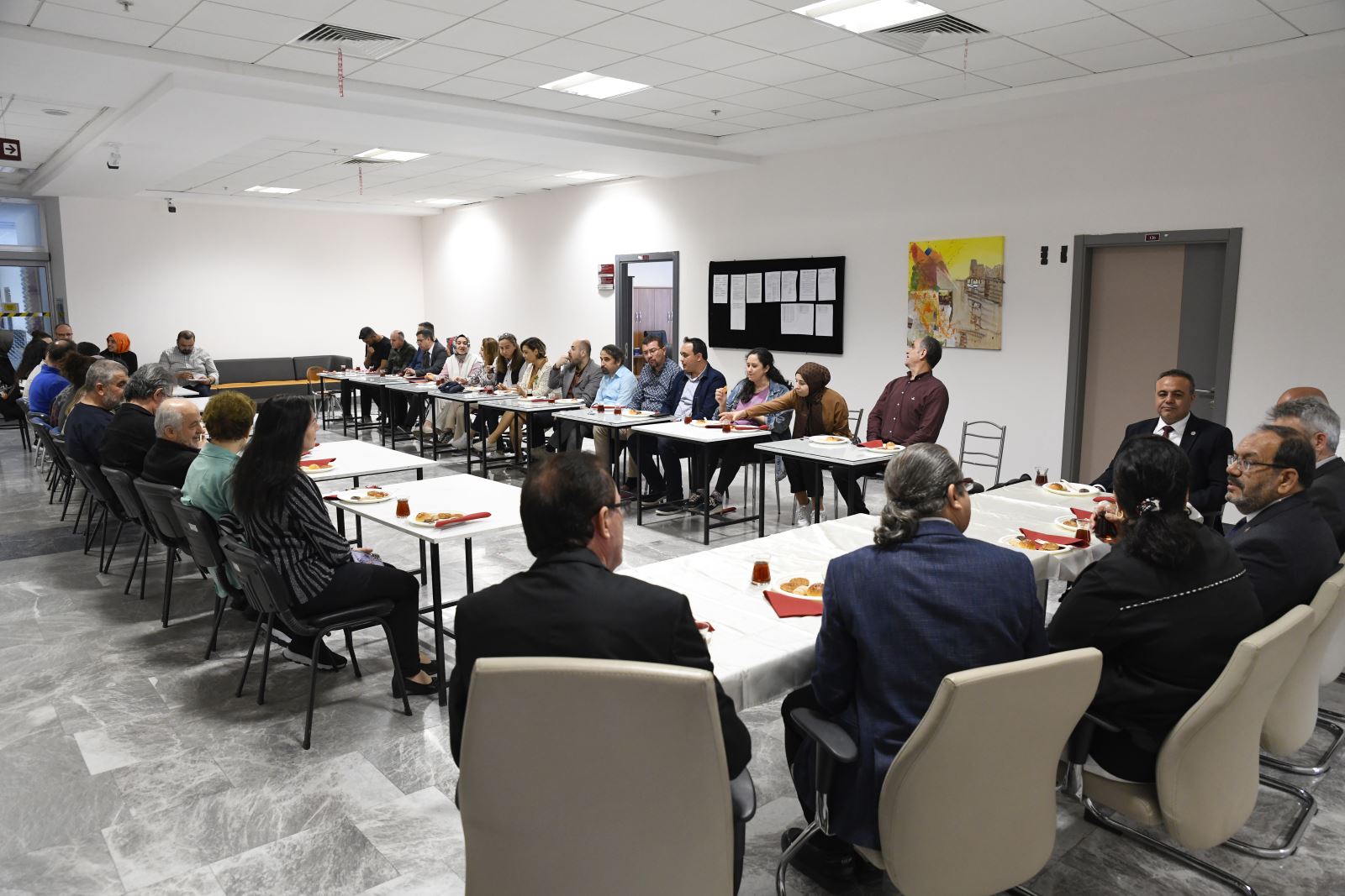 Bayramlaşma programına, Rektör Yardımcısı Prof. Dr. Hüseyin Deveci, Mühendislik ve Doğa Bilimleri Fakültesi Dekanı Prof. Dr. Ali Köken, Mimarlık ve Tasarım Fakültesi Dekanı Prof. Dr. Mine Ulusoy, Tarım Bilimleri ve Teknoloji Fakültesi Dekanı Prof. Dr. Mahmut Kuş, Lisansüstü Eğitim Enstitüsü Müdürü Prof. Dr. Mevlüt Uyan, Teknik Bilimler Meslek Yüksek Okulu Müdürü Prof. Dr. Mustafa Altın, Genel Sekreter Kamil Gök, daire başkanları ile birlikte akademik ve idari personel katıldı.