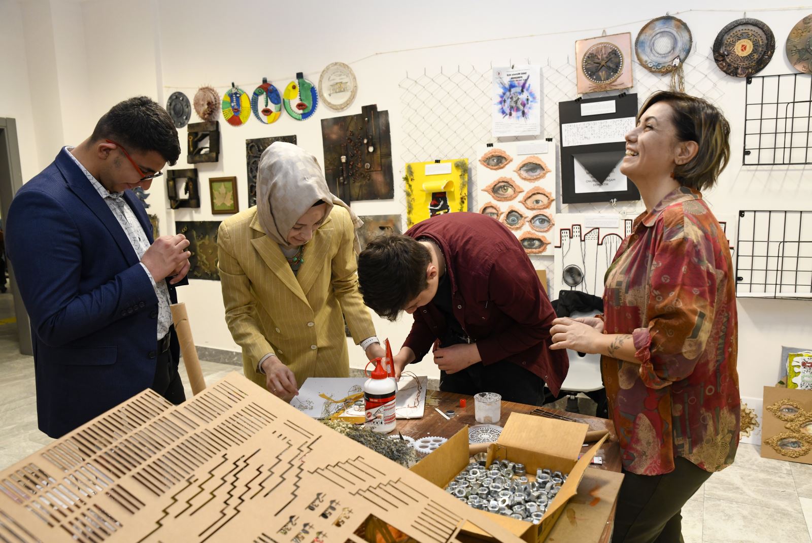 Üniversitemizden ise Rektör Yardımcımız Prof. Dr. Hüseyin Deveci, Mimarlık ve Tasarım Fakültesi Dekanı Prof. Dr. Mine Ulusoy, Sağlık Kültür ve Spor Dairesi Başkanı Ali Ziya Yalçınkaya ve Şube Müdürü Sultan Dur misafirlerimizi ağırlayarak kendilerine eşlik etti. Üniversitemiz hakkında bilgi edinen öğrenciler İleri Dönüşüm Atölyesini de ziyaret etti. Öğrenciler, Mimarlık Bölümü Öğretim Üyesi Doç. Dr. Bilgehan Yılmaz Çakmak ile atölye etkinliğine katılarak üniversiteli arkadaşları ile ileri dönüşüm eserleri üretti. Öğrenciler ayrıca Üniversitemize ait Kütüphane ve Spor Salonunu da gezerek fuaye alanında bulunan öğrenci projelerini inceledi.