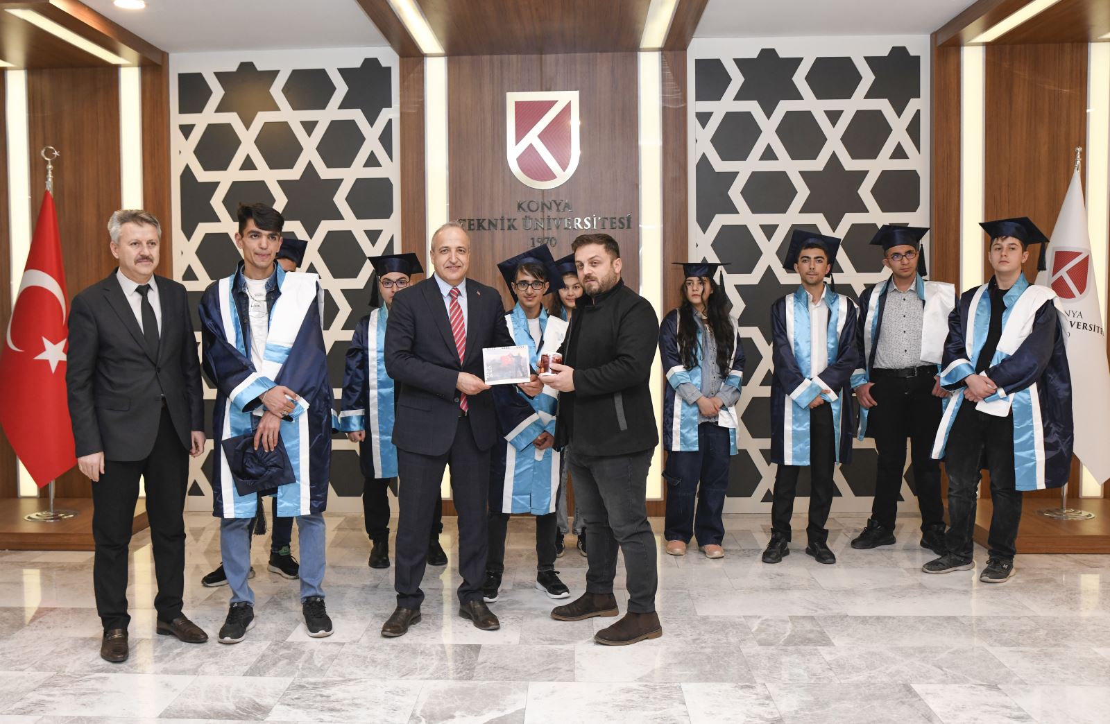"Bir Günlük Üniversiteli" olma projesi kapsamında Karatay Özel Eğitim Meslek Okulu Okul Müdür Yardımcısı Deniz Aras, Özel Eğitim Öğretmeni İsmail Tuna, Özel Eğitim Öğretmeni Esra Akın, Matbaa Teknolojisi Alan Şefi Mustafa Perçin ve Öğretmen/Sosyolog Hacer Fener danışmanlığında Üniversitemiz Gelişim yerleşkesinde bulunan Mimarlık ve Tasarım Fakültesini gezdi.