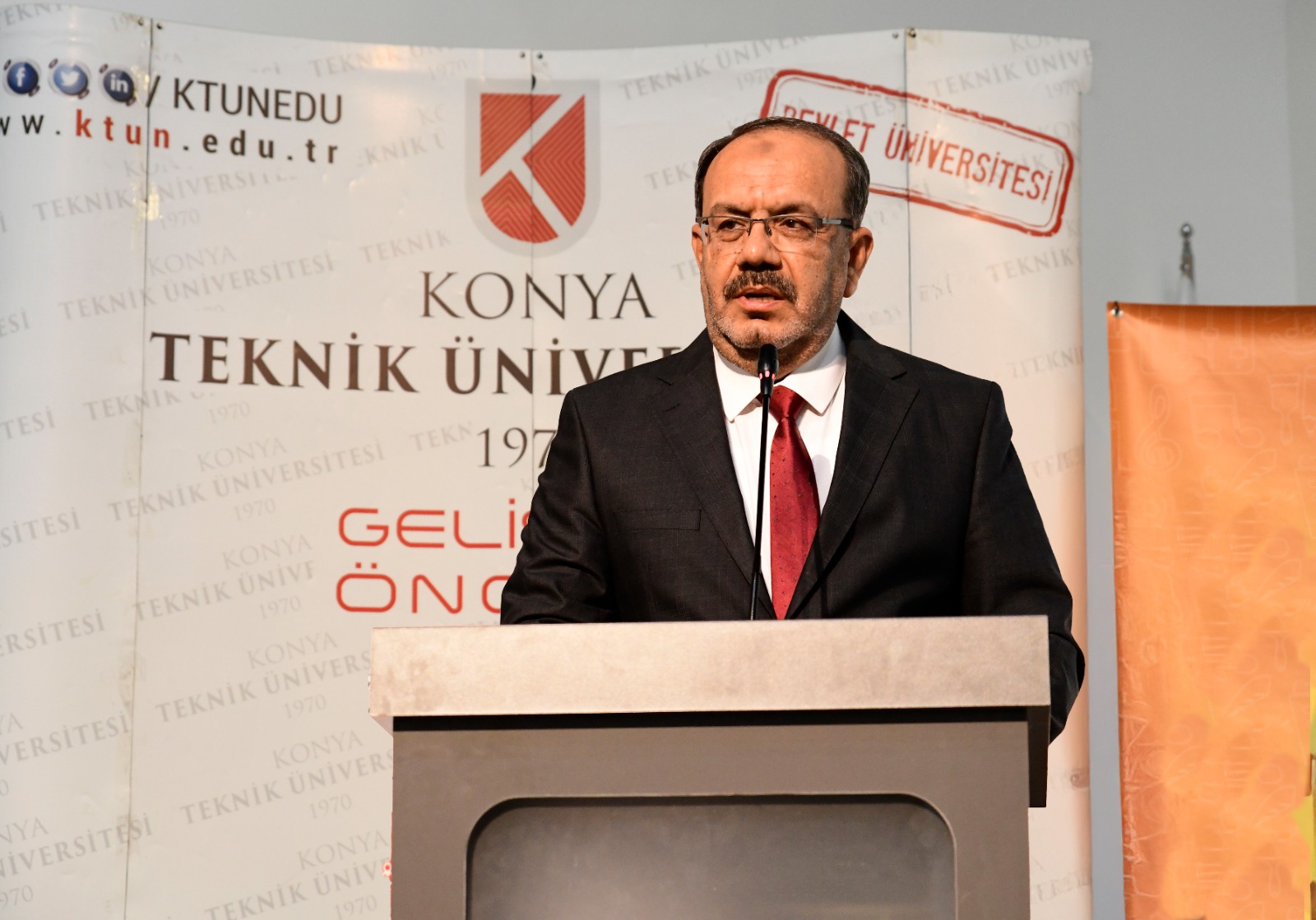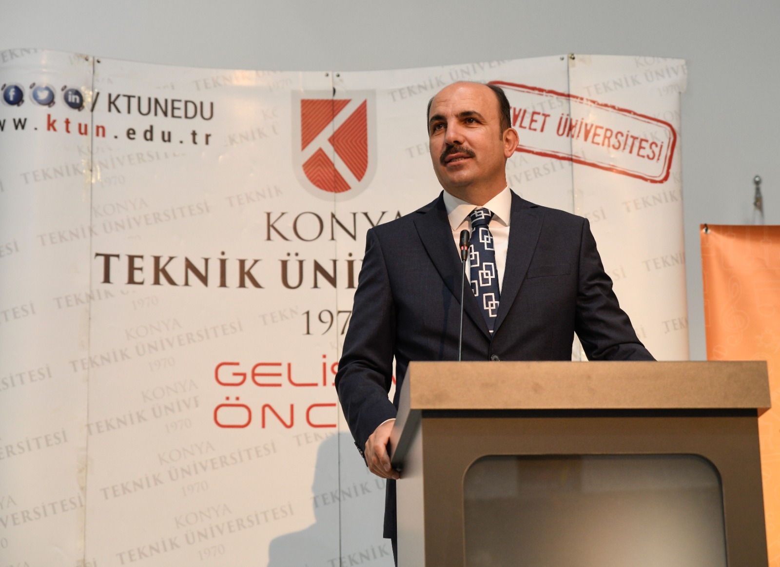Programda ilk olarak kürsüye gelen Rektörümüz Prof. Dr. Çelik, üniversitenin geçmişiyle alakalı bilgiler aktararak başladığı konuşmasında şunları söyledi: “2018 yılında Selçuk Üniversitesinden ayrılan Konya Teknik Üniversitesi 50 yılı aşkın bir tecrübeye sahip eğitim kurumudur. Üniversitemiz köklü akademik birikimi ve alanında uzman akademisyenleriyle sanayiye, özellikle de savunma sanayine değer katmaya devam etmektedir. Konya Teknik Üniversitesi 1970 yılından bu güne kadar mühendis ve mimar yetiştirmede deneyimli bir üniversitedir. Üniversitemiz bünyesinde; 5 fakülte, 1 meslek yüksekokulu, 1 yüksekokul ve 1 enstitü bulunmaktadır. Türkiye’nin geleceğine katkı sunacak, yerli ve milli projeleri destekleyecek çalışmalar yapıyoruz. Konya Teknik Üniversitesi öğrencilerinin ülkesini ve milletini seven, Türkiye Yüzyılı hedefi doğrultusunda ülkemizi geleceğe taşıyan projelere imza atan mezunlar olacaklarına inancımız tamdır.”
