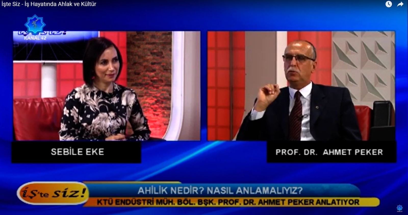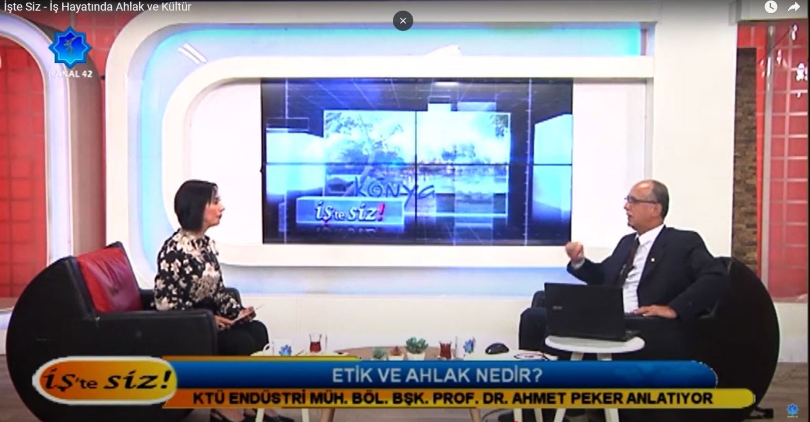 Ahilik Haftası kutlama etkinlikleri kapsamında Konya Teknik Üniversitesi Mühendislik ve Doğa Bilimleri Fakültesi Endüstri Mühendisliği Bölüm Başkanı Prof. Dr. Ahmet Peker, Kanal 42’de yayınlanan ve Sebile Eke’nin sunduğu “İşte Siz” programının konuğu oldu. Programda, "Mühendislik Mesleğinde Meslek Ahlakı ve Ahilik" konuşuldu.
