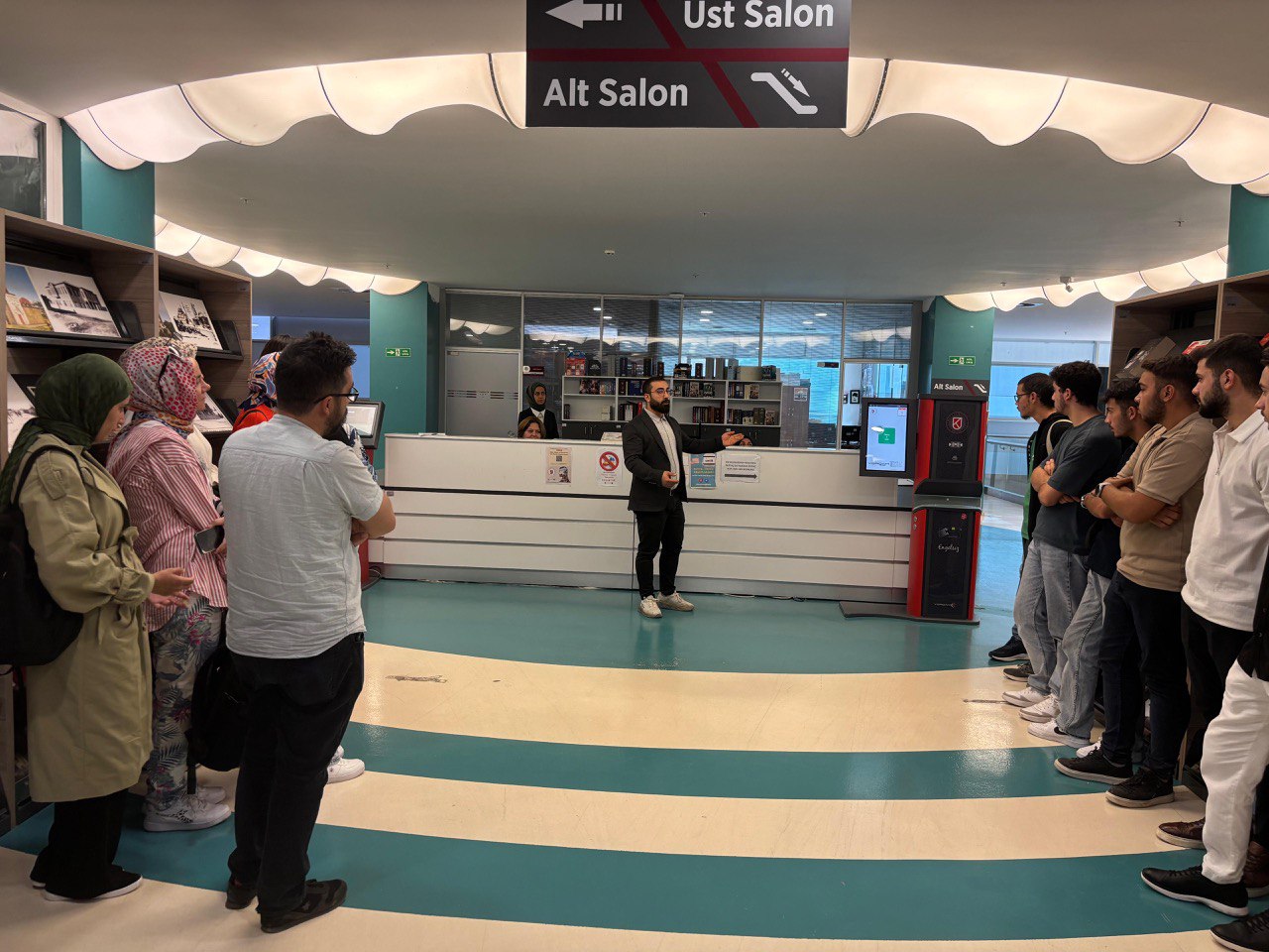 1. sınıfa başlayan öğrencilere yönelik kütüphane hizmetlerini yerinde tanıtmak amacıyla düzenlenen oryantasyon eğitiminde; video ve fotoğraflarla desteklenen sunumun ardından, öğrencilere uygulamalı olarak kütüphanedeki başta kiosklar ve diğer cihazların kullanımı yaptırıldı. Ardından kütüphane bölümleri olan alt ve üst okuma salonu ile özel çalışma odaları gezdirildi. Kitapların konularına göre raflara yerleştiriliş sistemi ve rafların konu ve harflere göre konumları anlatılarak yerinde inceleme ve gözlemler yapıldı. Öğrencilerin soruları cevaplandırılarak, kütüphane hakkında öneri, eleştiri ve görüşler alındı.
