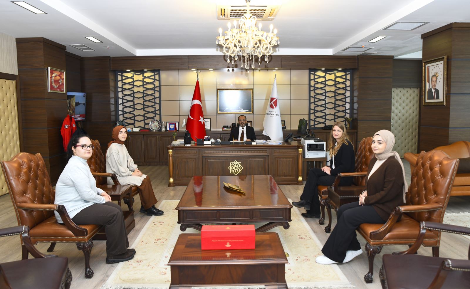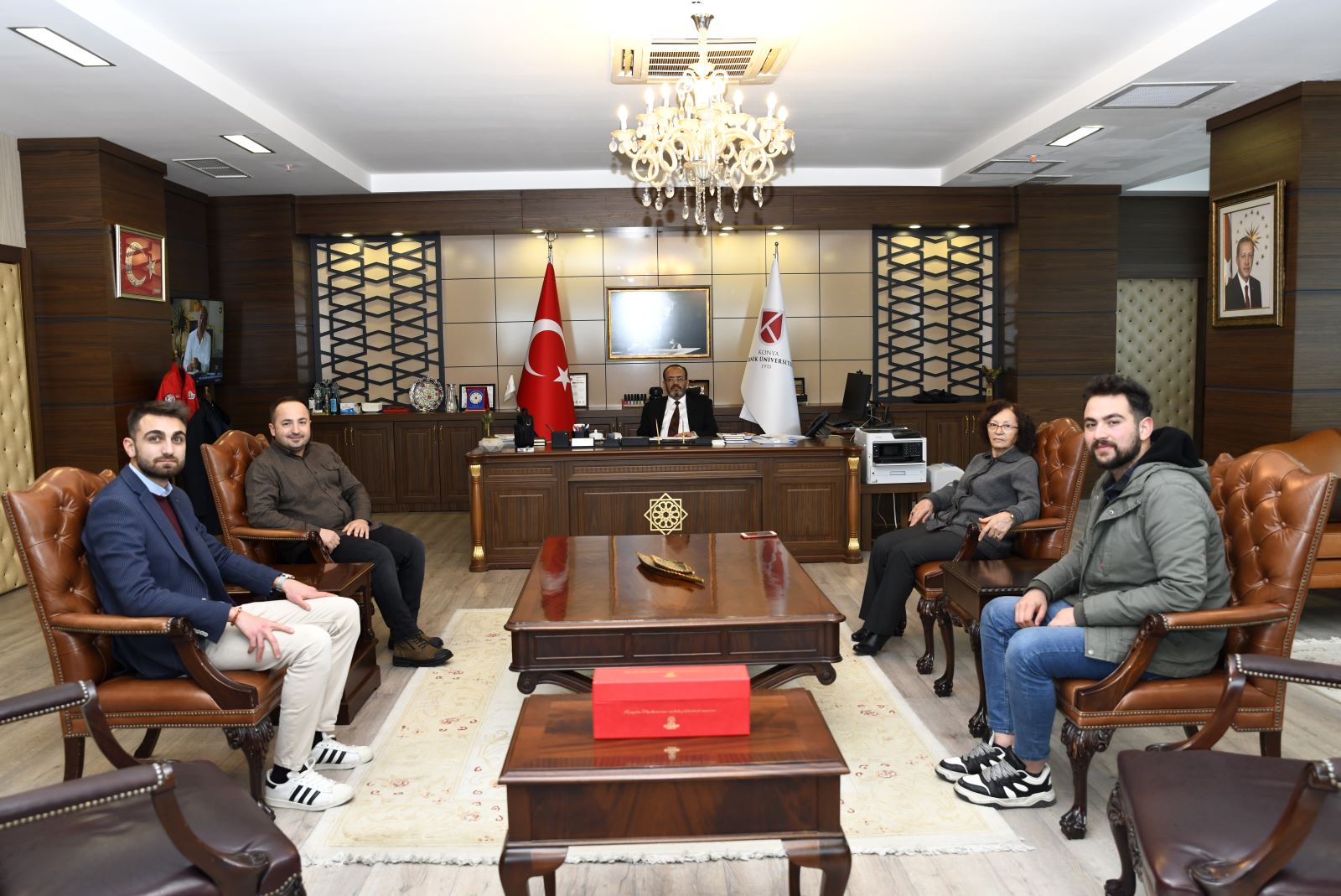 Danışmanlığını Öğretim Görevlimiz Elif Yıldırım’ın üstlendiği Kalite Kulübü ile Danışmanlığını Arş. Gör. Dr. Sami Dursun’un üstlendiği Büyülü Alem Tiyatro Topluluğu, Rektörümüz Prof. Dr. Osman Nuri Çelik’e ziyarette bulundu. Ziyarete Rektör Yardımcımız Prof. Dr. Muazzez Çelik Karakaya da eşlik etti.