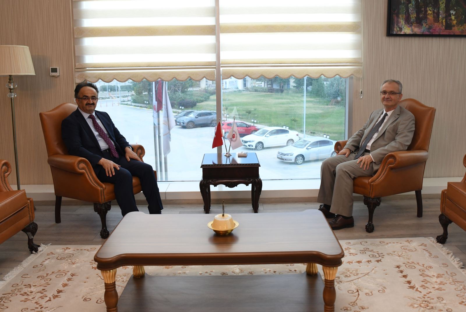 Karatay Kaymakamı Zafer Orhan, Rektörümüz Prof. Dr. Babür Özçelik’e veda ziyaretinde bulundu. Rektörümüz, Ankara’ya Vali Yardımcısı olarak atanan Zafer Orhan’a yeni görevinde başarılar diledi.