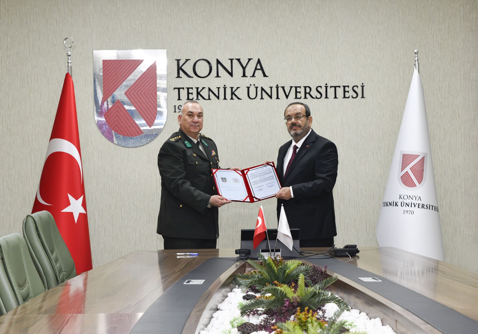 Gelişim Yerleşkesi Rektörlük Binasında gerçekleşen protokol, Rektörümüz Prof. Dr. Osman Nuri Çelik ile KBRN Savunma ve Güvenlik Tugay Komutanı Piyade Albay Yusuf Uysal’ın imza atmaları ile gerçekleşti.
