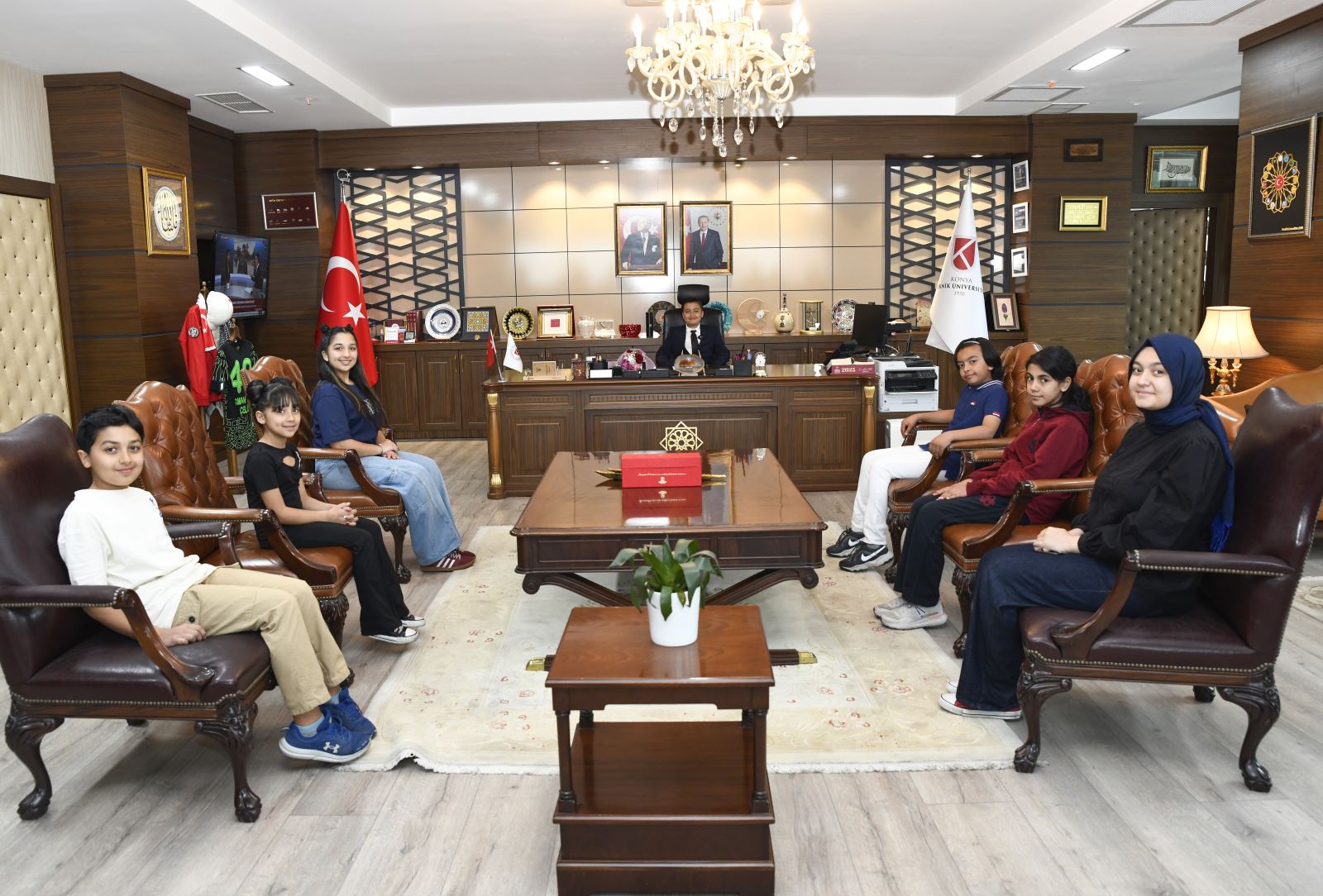 23 Nisan Ulusal Egemenlik ve Çocuk Bayramı dolayısıyla Konya Teknik Üniversitesi (KTÜN)’nde anlamlı bir etkinlik gerçekleştirildi. Rektörlük koltuğu, bu özel gün kapsamında sembolik olarak ilkokul 5. sınıf öğrencisi Mehmet Musa Topkafa’ya devredildi. Minik rektör, üniversitenin yönetim koltuğuna oturarak geleceğe dair umut dolu düşüncelerini paylaştı.