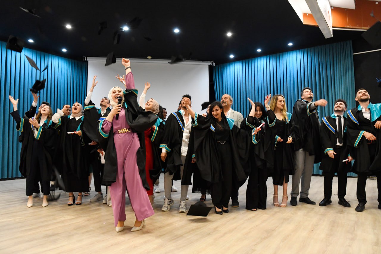 Üniversitemizden 2022-2023 Eğitim-Öğretim Yılında başarıyla mezun olarak diplomalarına kavuşan öğrenciler mutluluklarını; törene katılan aileleri, arkadaşları, sevdikleri ve hocalarıyla paylaştı. Törenler, yemin ve kep atma seremonisinin ardından sona erdi.