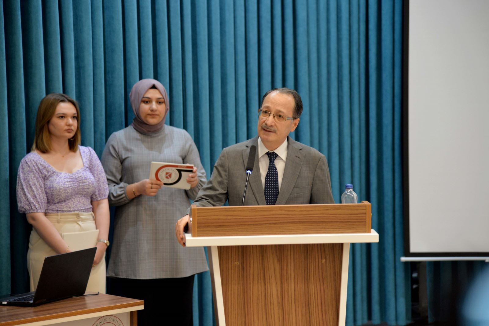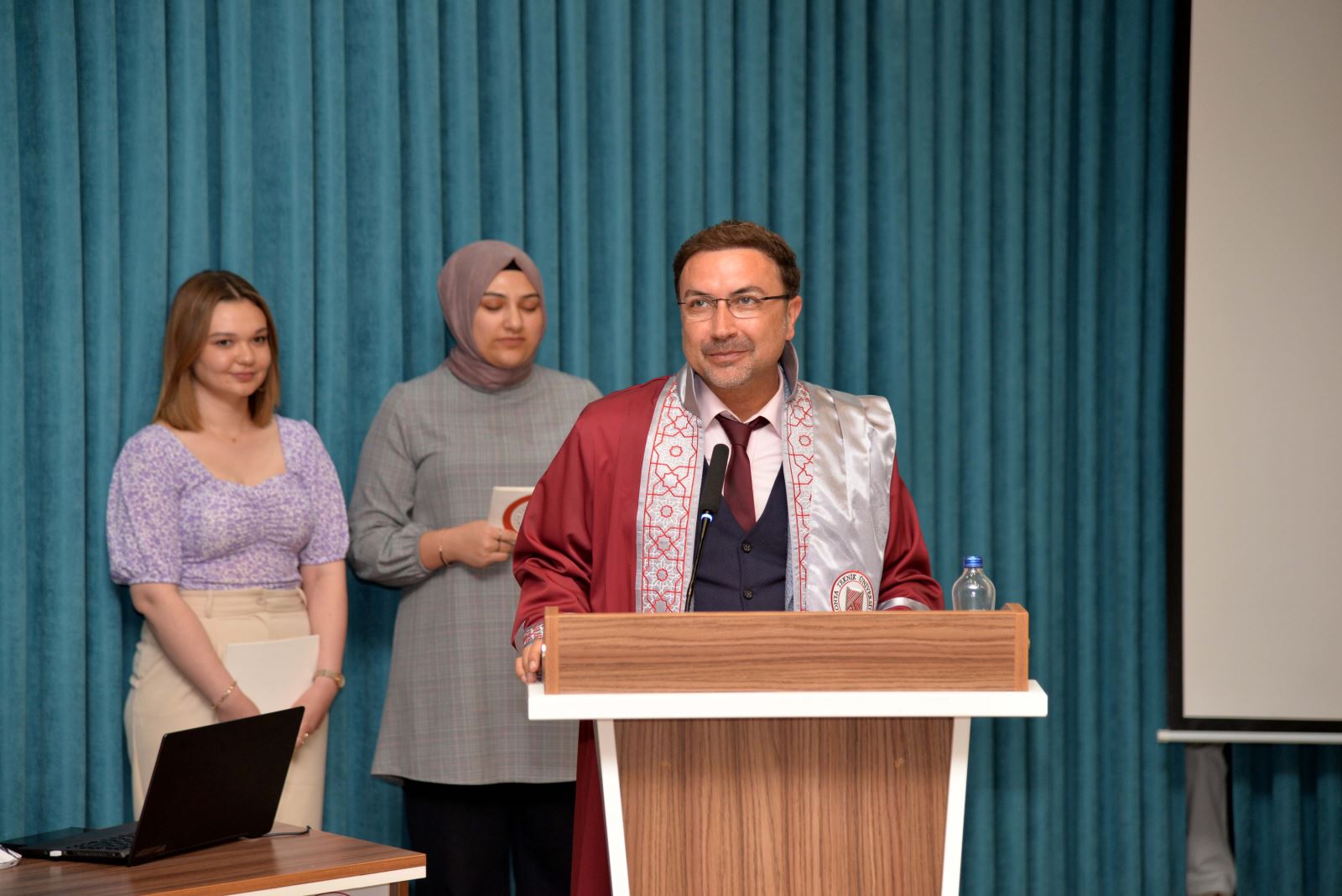 Rektör Yardımcısı aynı zamanda Mühendislik ve Doğa Bilimleri Fakültesi Dekanı Prof. Dr. H. Kürşad Ersoy ise mezunlarımıza hitaben: “Aldığınız temel eğitim, hedefinize ulaşmak için klavuzunuz olacaktır. Sizlerden başarılı olmanızı ve ülkemize faydalı işler yapmanızı bekliyoruz. Yeni mezunlarımızı gururla, güvenle ve heyecanla uğurluyoruz. Yolunuz ve bahtınız açık olsun.” diyerek seslendi.