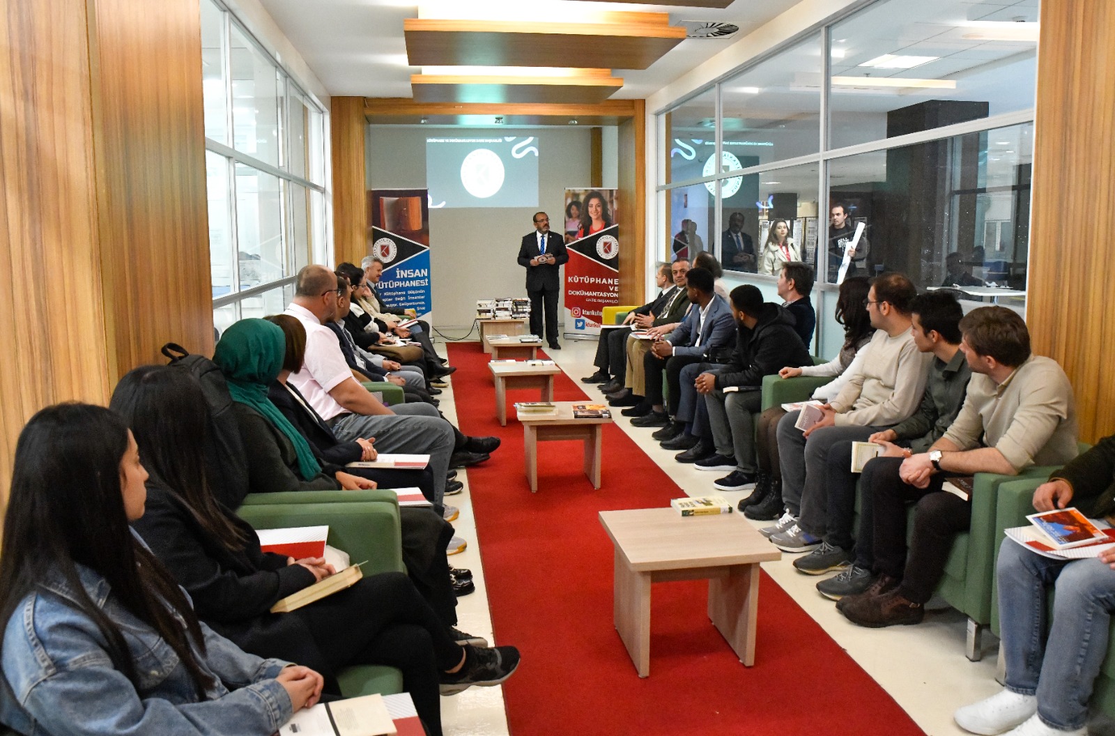 Etkinlik, Kütüphane ve Dokümantasyon Daire Başkanı Ayhan Tekin’in sunumu ile başladı. Tekin sunumunda, 2020 yılında kurulan kütüphanenin gelişim süreci hakkında bilgi verdi. Kütüphanenin tefrişiyle birlikte fiziki ve elektronik kitapların kullanıcıların hizmetine sunulduğunu belirten Tekin, 5 yıllık süre içerisinde Stratejik Planda yer alan hedeflerin üzerinde başarı sağlandığını ifade etti. Ayrıca alt kat salonun aktif hale getirilerek teknolojik cihazların kullanıcıların erişimine açıldığını vurguladı. Kütüphanede 46 bin kitap bulunduğunu, kullanıcıların 25’i ücretli abonelikle, 16’sı TÜBİTAK ULAKBİM aracılığıyla olmak üzere toplam 41 veri tabanına erişim sağlayabildiklerini sözlerine ekledi.