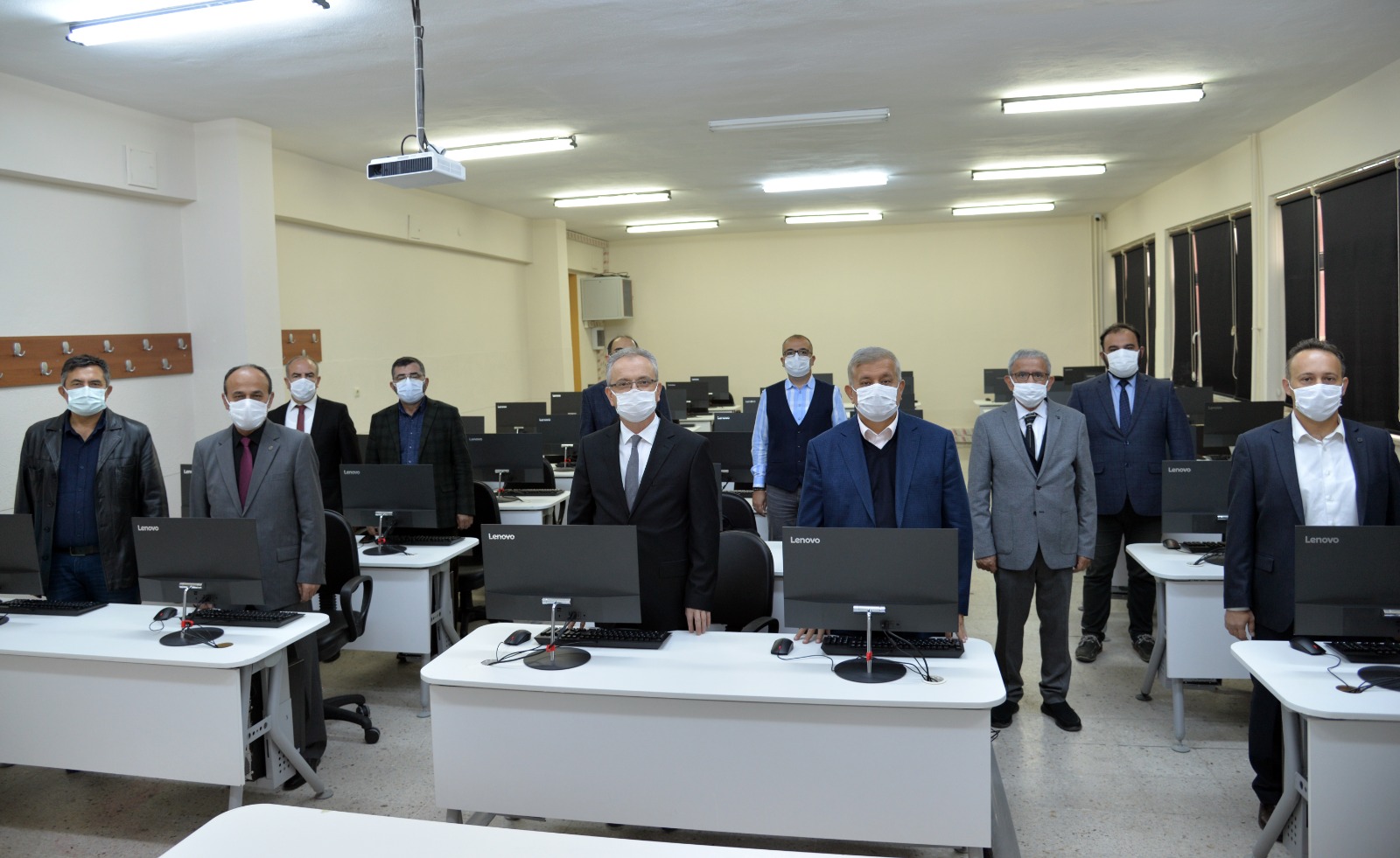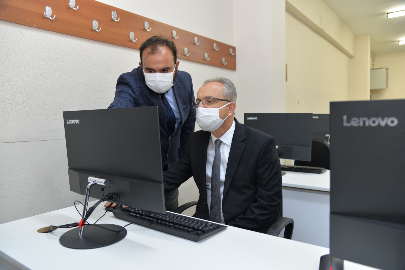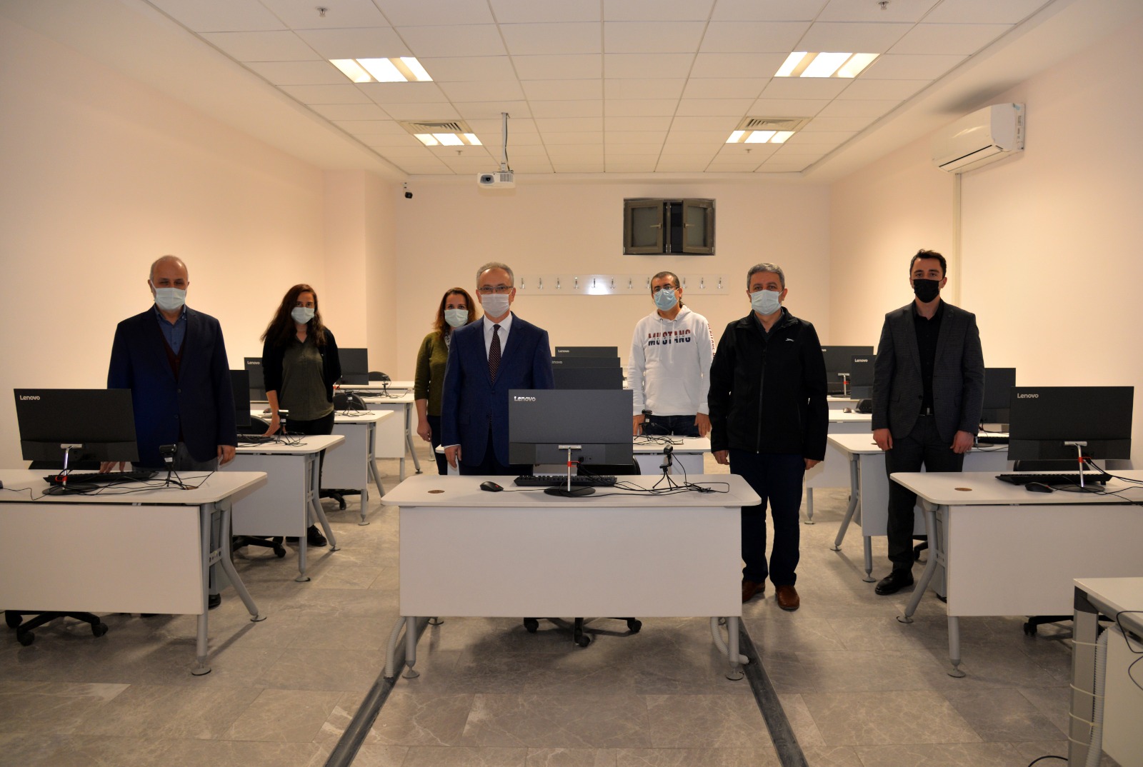 Bilgisayar laboratuvarlarını gezen Rektör Prof. Dr. Babür Özçelik, Mühendislik ve Doğa Bilimleri Fakültesi Dekanı Prof. Dr. Ferruh Yıldız ve Mühendislik ve Doğa Bilimleri Fakültesi Dekanı Prof. Dr. Rahmi Erdem’den bilgi aldı.
