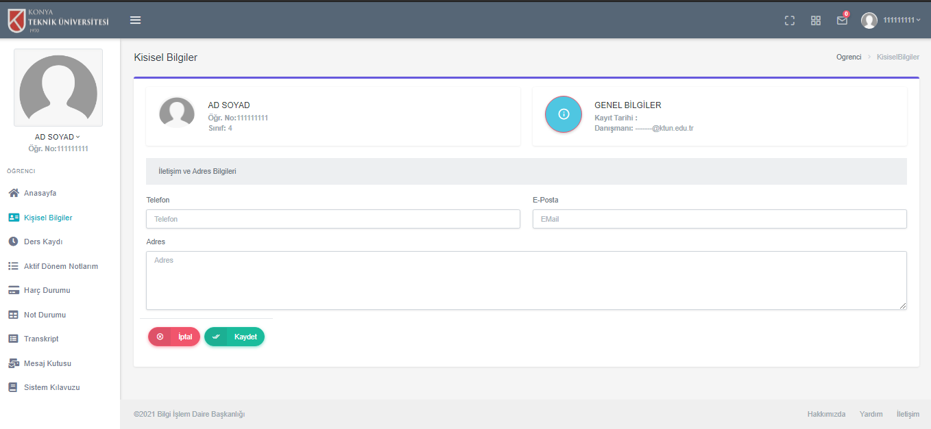 Bilgi İşlem Dairesi Başkanlığı Yazılım Geliştirme Birimi tarafından hazırlanan “Yeni Öğrenci Bilgi Sistemi” yazılım geliştirme çalışması büyük oranda tamamlandı. Geliştirilen yazılım, 2021-2022 Eğitim ve Öğretim Güz dönemi itibariyle yeni öğrenci bilgi sisteminin öncelikli modülleri (Öğrenci Kayıt, Ders Kayıt, Harç, Loglama, Yetkilendirme vb. ) kullanılmaya başlandı.