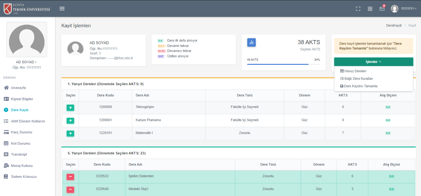 Konya Teknik Üniversitesi (KTÜN), Üniversite Bilgi Yönetim Sistemi kapsamında yürüttüğü yazılım geliştirme çalışmalarına bir yenisi daha ekleyerek, öğrencilerin kullanımına sundu.