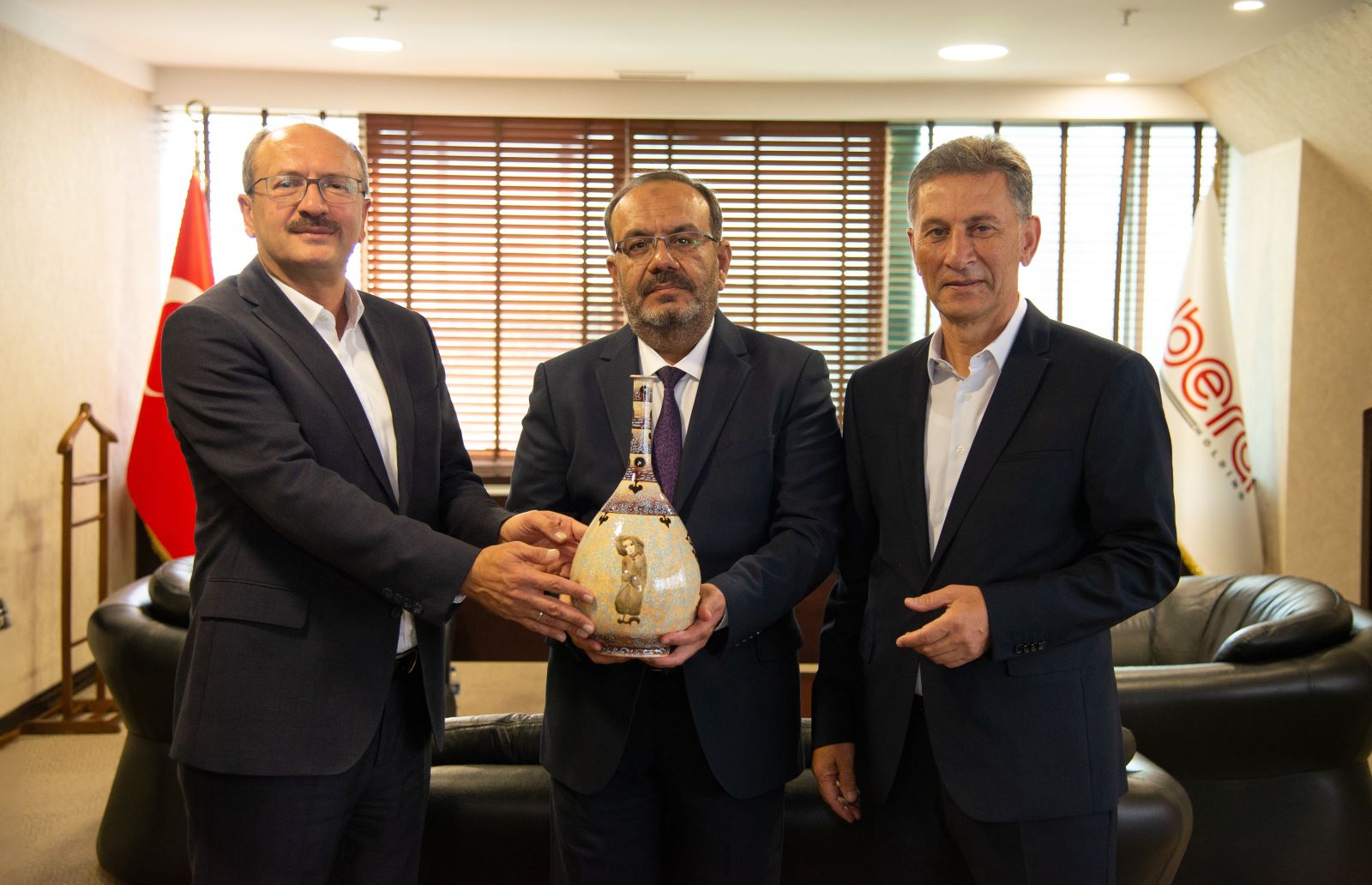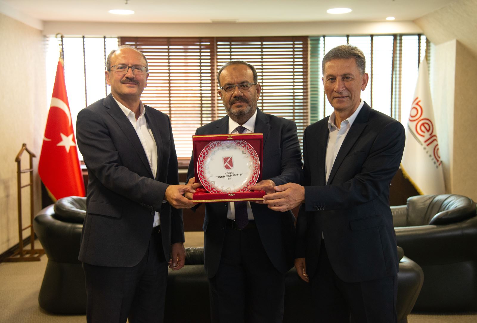 Rektörümüz Prof. Dr. Osman Nuri Çelik, Üniversite-sanayi işbirliği kapsamında, Bera Holding Yönetim Kurulu Başkanı Erol Kaya ile Bera Holding Yönetim Kurulu Başkan Yardımcısı ve KTÜN Üst Danışma Kurulu Üyesi Mustafa Ulvi Bezirci’yi ziyaret etti.