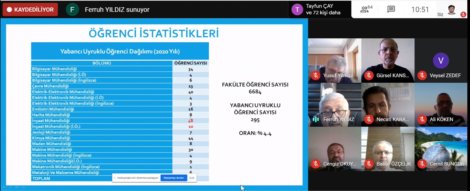 Toplantı da Mühendislik ve Doğa Bilimleri Fakültesi Dekanı Prof. Dr. Ferruh Yıldız 2021-2022 yılı plan, program ve işleyişinin ele alındığı bir sunum gerçekleştirdi.  2020-2021 öğretim yılı genel değerlendirmesinin yapıldığı toplantı da yaklaşık bir yıldır devam eden pandemi dönemi uzaktan öğretim süreci görüşüldü.