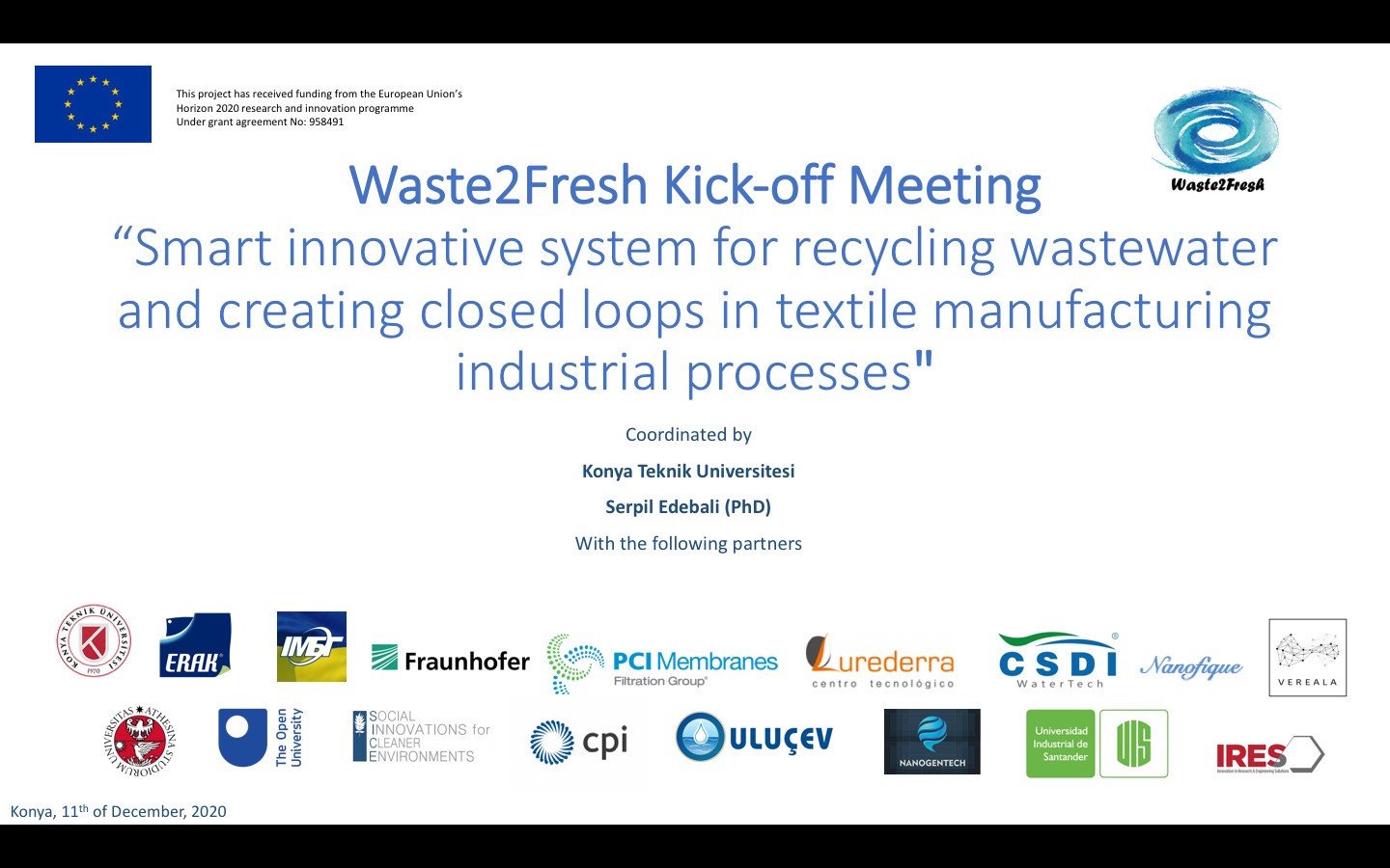 Koordinatörlüğünü Konya Teknik Üniversitesi Mühendislik ve Doğa Bilimleri Fakültesi Öğretim Üyesi Doç. Dr. Serpil Edebali’nin yaptığı Avrupa Birliği Komisyonu tarafından TÜBİTAK Ufuk2020 Programı kapsamında kabul edilen “Smart Innovative System For Recycling Wastewater And Creating Closed Loops in Textile Manufacturing Industrial Processes - Waste2Fresh” projesine başlandı.
