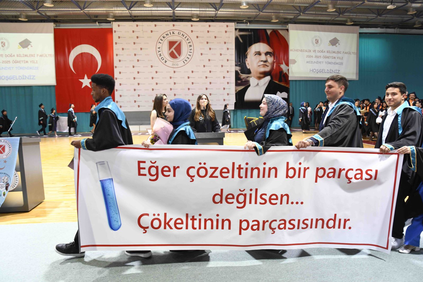 Konya Teknik Üniversitesi (KTÜN), Mühendislik ve Doğa Bilimleri Fakültesi’nde mezuniyet heyecanı yaşandı. Fakülteden mezun olan öğrenciler, KTÜN Gelişim Yerleşkesi Kapalı Spor Salonu’nda düzenlenen törenle diplomalarını alarak hayatlarının yeni bir dönemine adım attı. Tören, öğrencilerin ve ailelerinin gurur dolu anlarına sahne oldu.