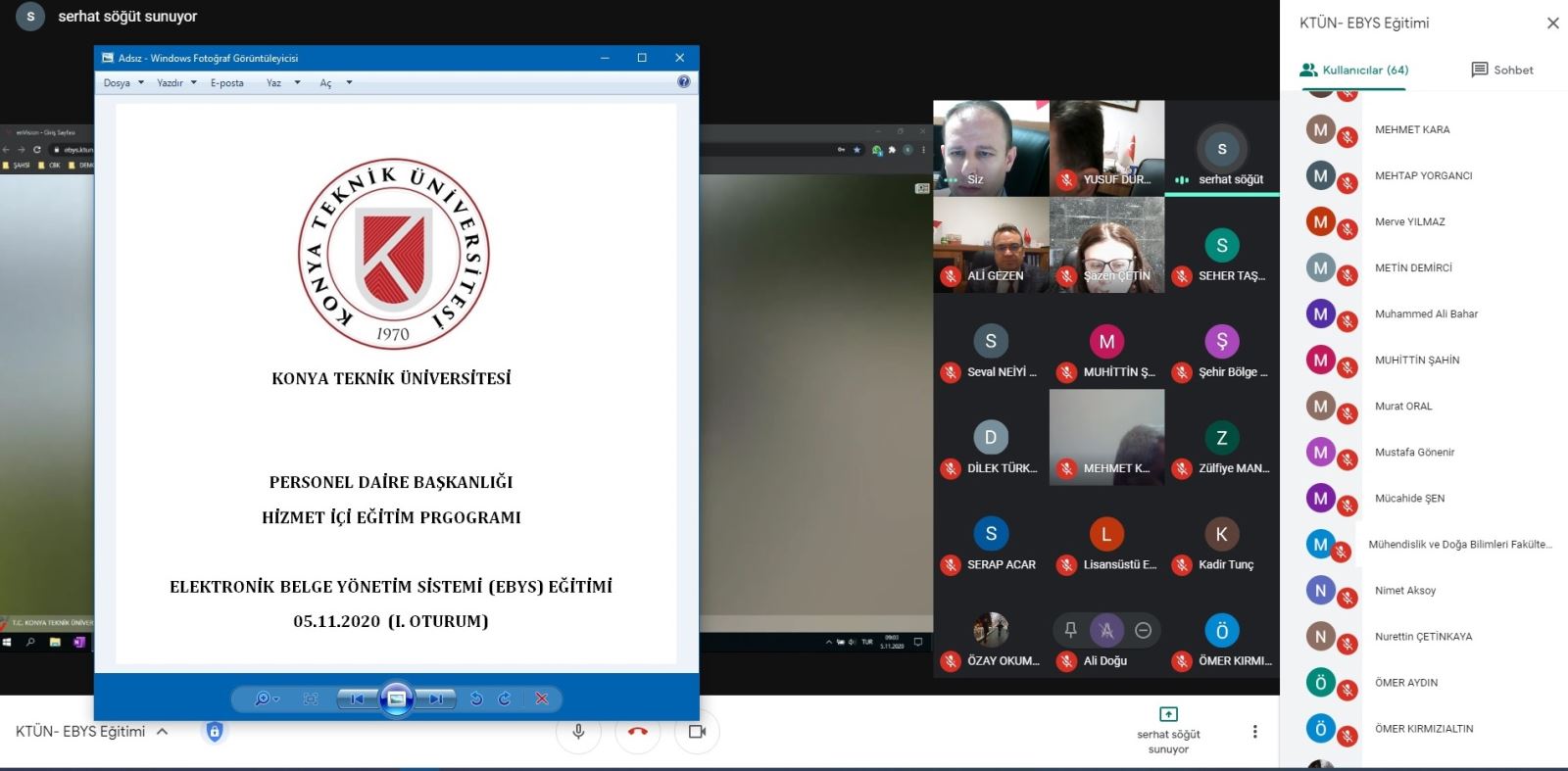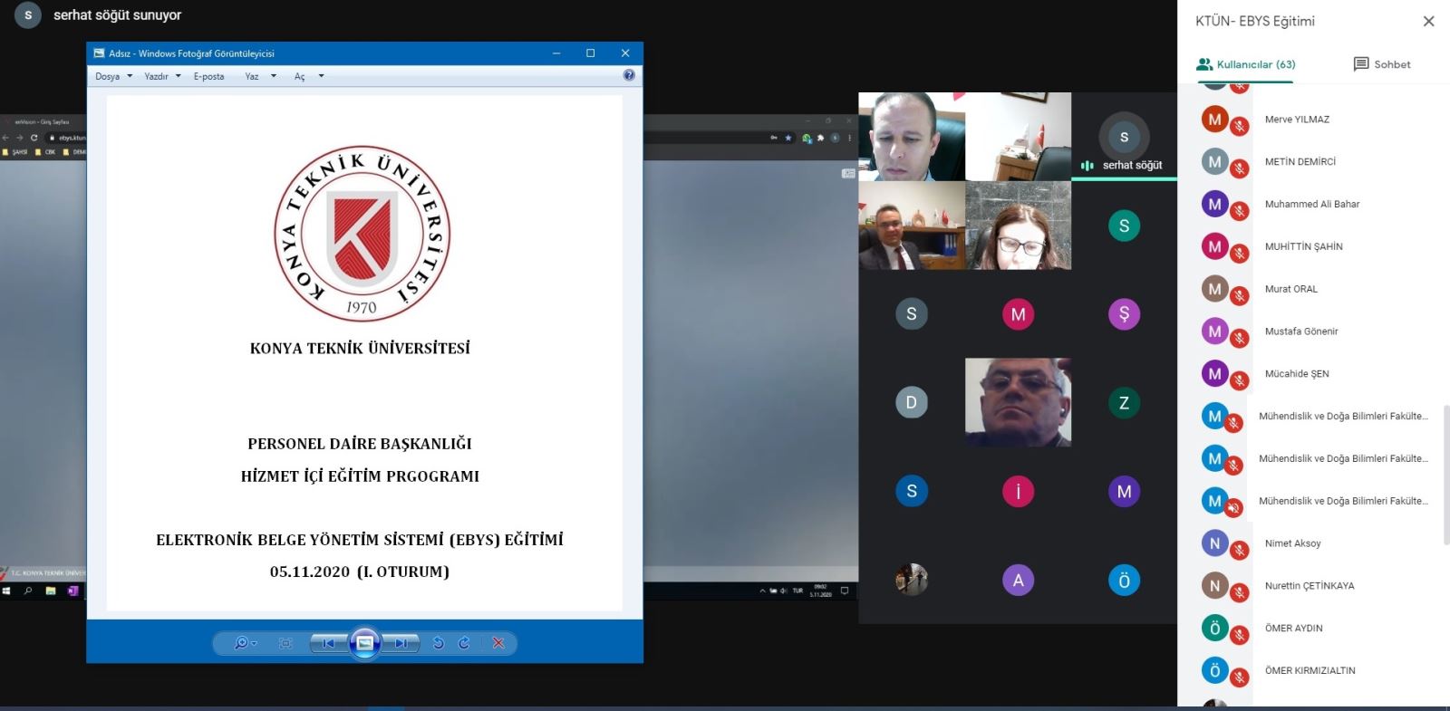 Konya Teknik Üniversitesi, Personel Daire Başkanlığı Hizmet İçi Eğitim Komisyonu Programı kapsamında üniversitede görev yapan personelin etkinliğini ve verimliliğini artırmak amacıyla 2020 eğitim yılı hizmet içi eğitim programları belirlendi. Bu amaç doğrultusunda üniversite personeline Elektronik Belge Yönetimi Sistemi (EBYS) Eğitimi verildi.