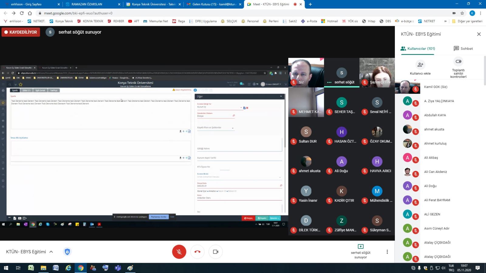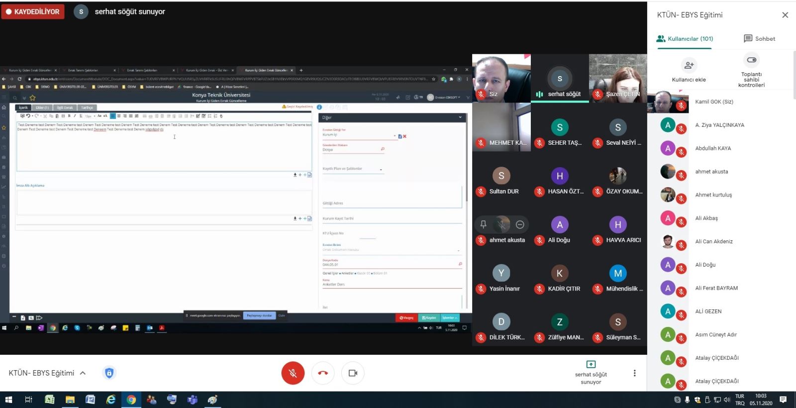 Uzaktan bağlantı yoluyla gerçekleştirilen Elektronik Belge Yönetim Sistemi (EBYS) eğitimi, CBKSoft yazılım A.Ş Uzmanı Serhat Söğüt tarafından 2 oturum halinde yapıldı. İlk oturumuna 101. İkinci oturumuna ise 82 olmak üzere toplam 183 personel katıldı.