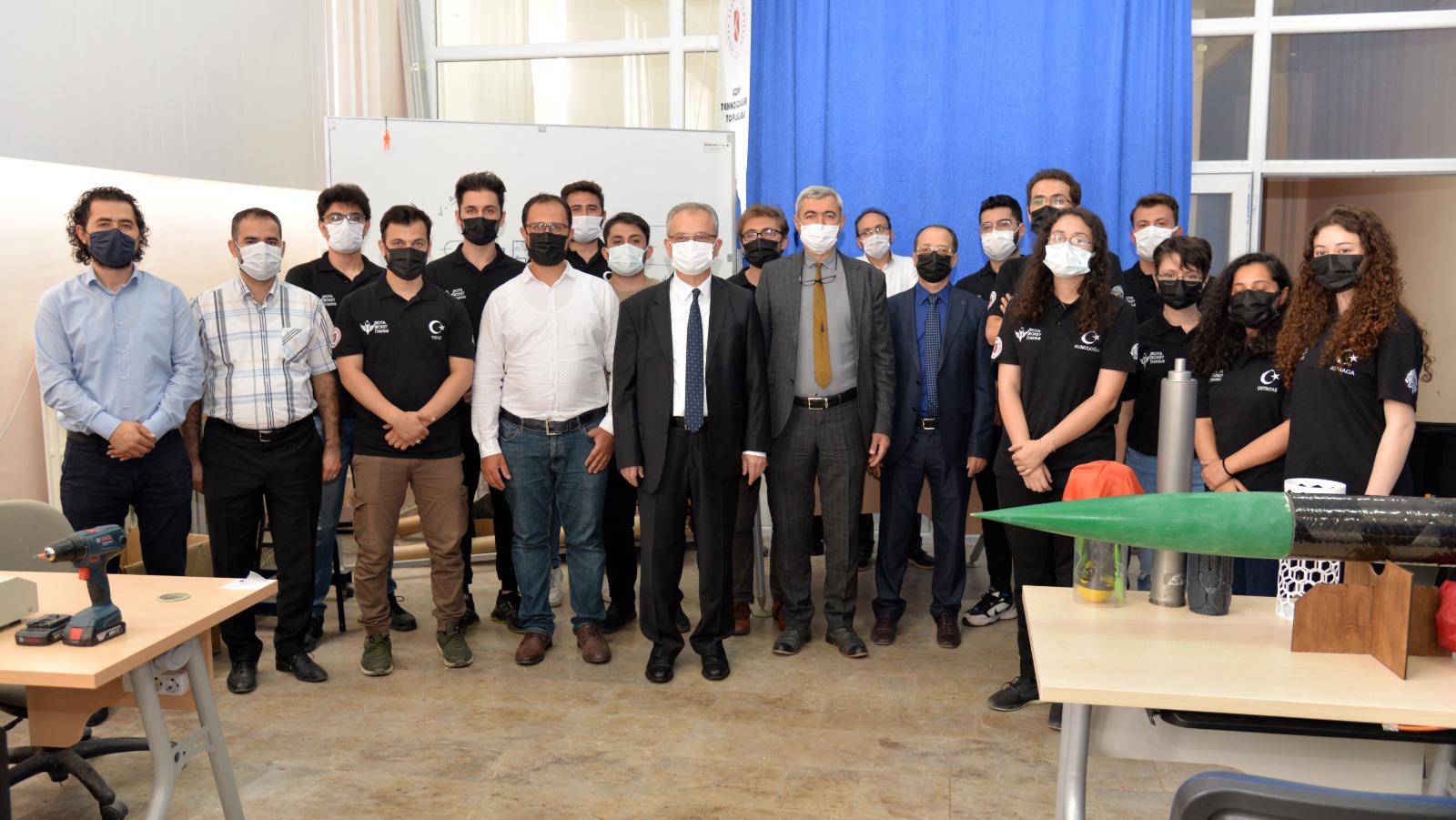 ‘TEKNOFEST’21 KTÜN Takımları, 21-26 Eylül 2021 tarihleri arasında İstanbul’da gerçekleştirilmesi planlanan yarışmalara yönelik hazırlıklarına tüm hızıyla devam ederken, KTÜN Rektörü Prof. Dr. Babür Özçelik, beraberinde Rektör Yardımcısı Prof. Dr. H. Selçuk Halkacı, Mühendislik ve Doğa Bilimleri Fakültesi Dekanı Prof. Dr. Halil Kürşat Ersoy, KTÜN TEKNOFEST Koordinatörü Doç. Dr. Akif Durdu ile birlikte yarışmaya katılacak takımları ziyaret etti.