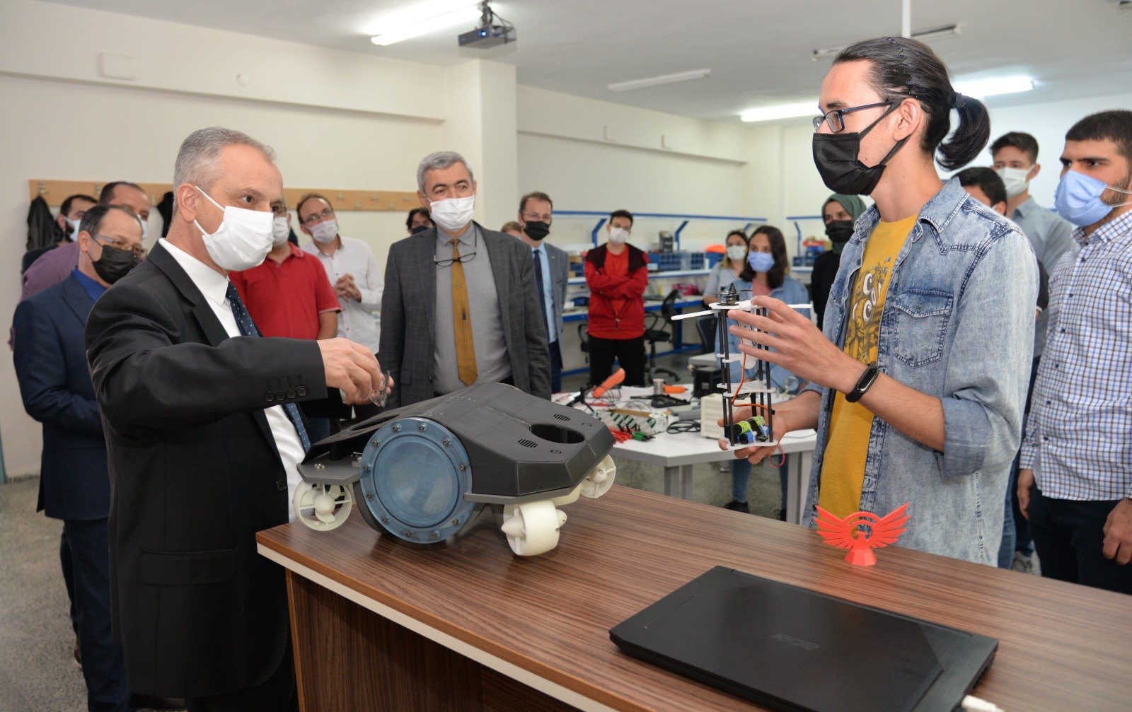 Konya Teknik Üniversitesi (KTÜN) Rektörümüz Prof. Dr. Babür Özçelik, TEKNOFEST’21 Yarışmalarına katılacak öğrencileri Mühendislik ve Doğa Bilimleri Fakültesinde ziyaret ederek yapılan proje ve çalışmaları yerinde inceledi.