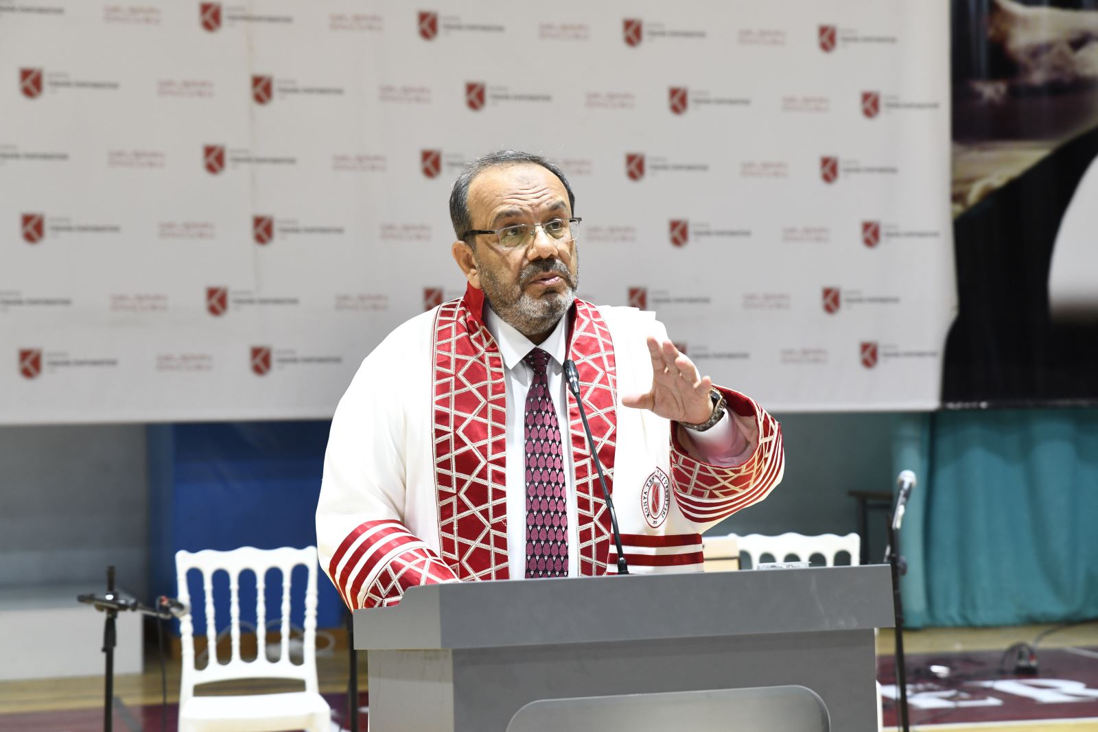 KTÜN Teknik Bilimler Meslek Yüksekokulu Müdürü törende yaptığı konuşmada, “Büyük bir emek ve özverinin ürünü olan bu anlamlı günde, mezuniyet coşkusunu hep birlikte paylaşıyoruz. Bugün, kendi ayaklarınızın üzerinde durmaya başladığınız yeni bir yolculuğun başlangıcı. Mezuniyet, bir son değil; aslında yepyeni bir başlangıcın kapısıdır. Bu süreçte yanınızda olan, sizi destekleyen kıymetli ailelerinizi ve sizlere emek veren değerli hocalarınızı asla unutmayın. Şimdi sıra sizde: Hedeflerinizi netleştirerek, kararlılıkla ve güvenle yolunuza devam edin. Sizleri bugünlere getiren kıymetli ailelerinize, emeği geçen tüm hocalarımıza ve azminizle bu başarıya ulaşan sizlere gönülden teşekkür ediyorum, yolunuz açık olsun.” dedi.