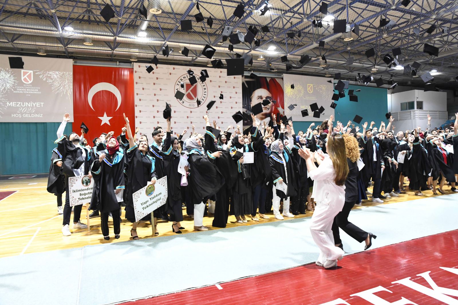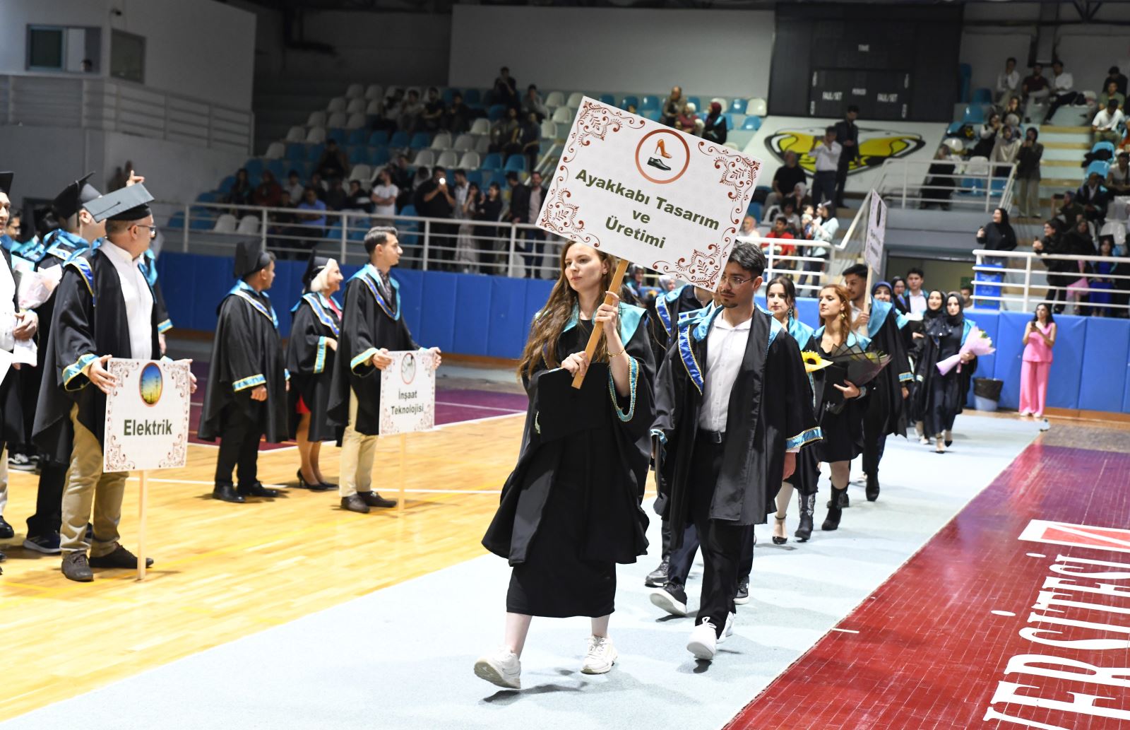 Konya Teknik Üniversitesi (KTÜN) Teknik Bilimler Meslek Yüksekokulu öğrencileri Gelişim Yerleşkesi spor salonunda yapılan törenle, mezuniyet heyecanını aileleri ve hocalarının gurur dolu bakışları ile doyasıya yaşadı.