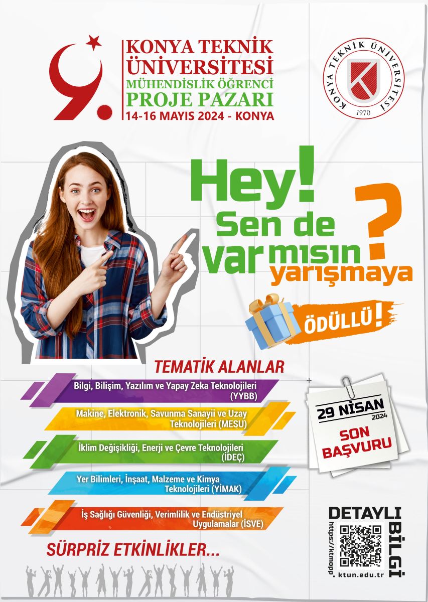 Üniversitemiz tarafından bu yıl 9. su gerçekleştirilecek olan ‘Konya Teknik Üniversitesi Mühendislik Öğrenci Proje Pazarı’na (KTMOPP) başvurular devam ediyor.