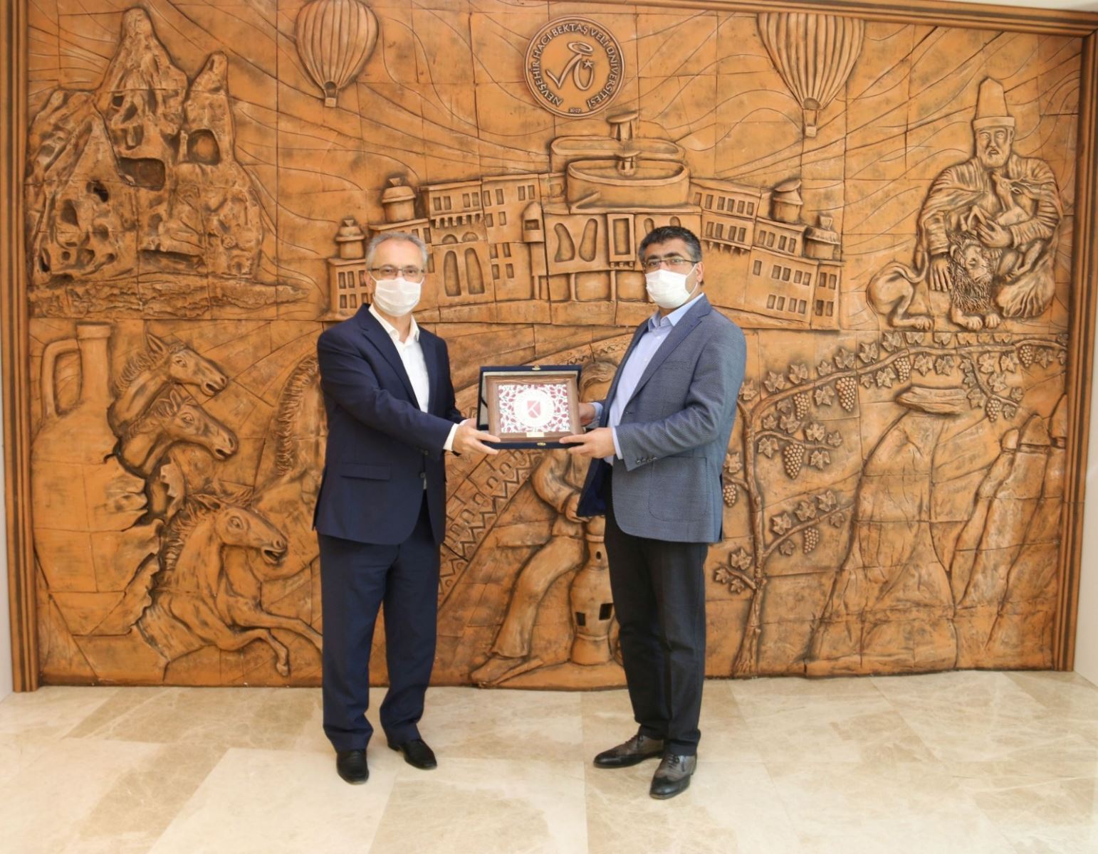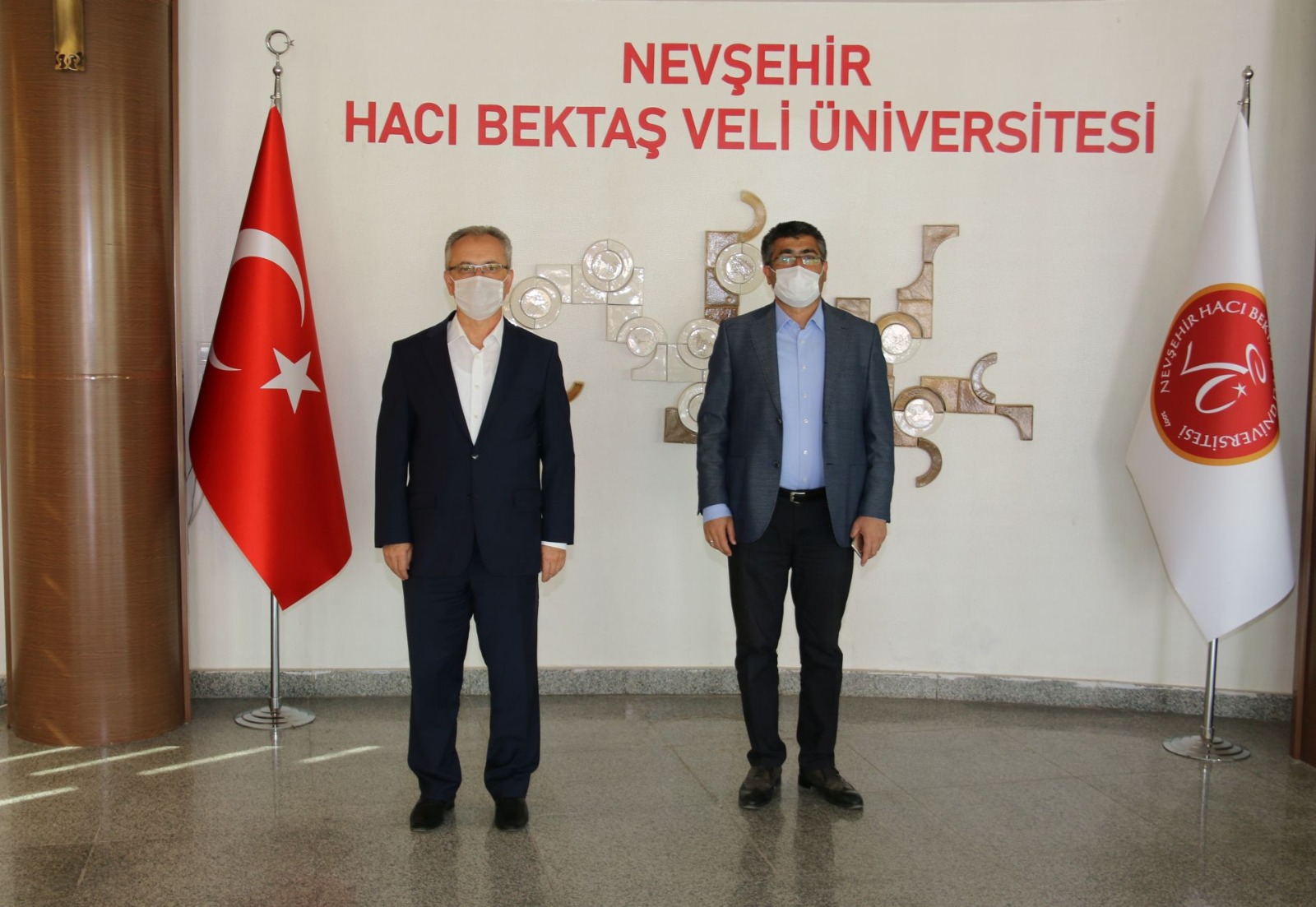 Konya Teknik Üniversitesi Rektörü Prof. Dr. Babür Özçelik, Nevşehir Hacı Bektaş Veli Üniversitesi (NEVÜ) Rektörü Prof. Dr. Semih Aktekin’i ziyaret etti.
